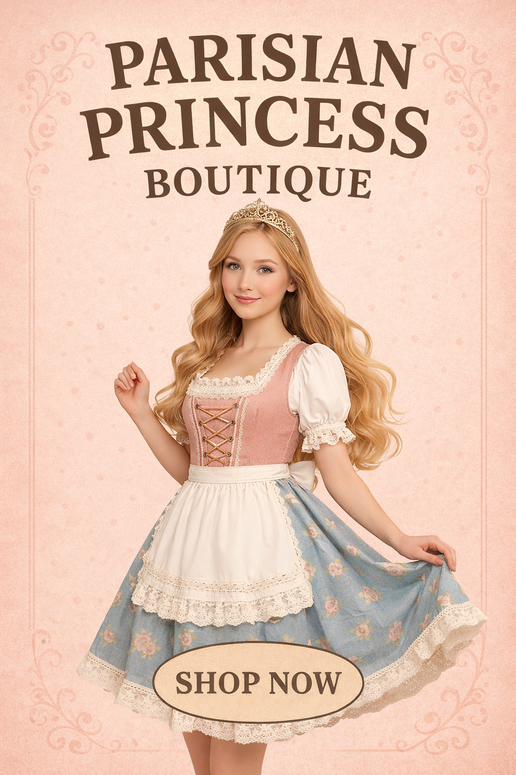 The heart of Parisian Princess begins with Princesscore, a reinvention of tradition. Inspired by the historic corset dresses born in the farmlands of Southern Germany and Northern France near Alsace and Reims, this collection honors centuries‑old craftsmanship. Originally designed to support women as they worked the land, these corsets evolved into timeless silhouettes that cinch the waist and celebrate the feminine form. Today, Princesscore unites traditional corsetry with modern dresses, creating the iconic Cinderella Dress, also known as the Corset Dress — a symbol of enduring beauty, structure, and grace ✨