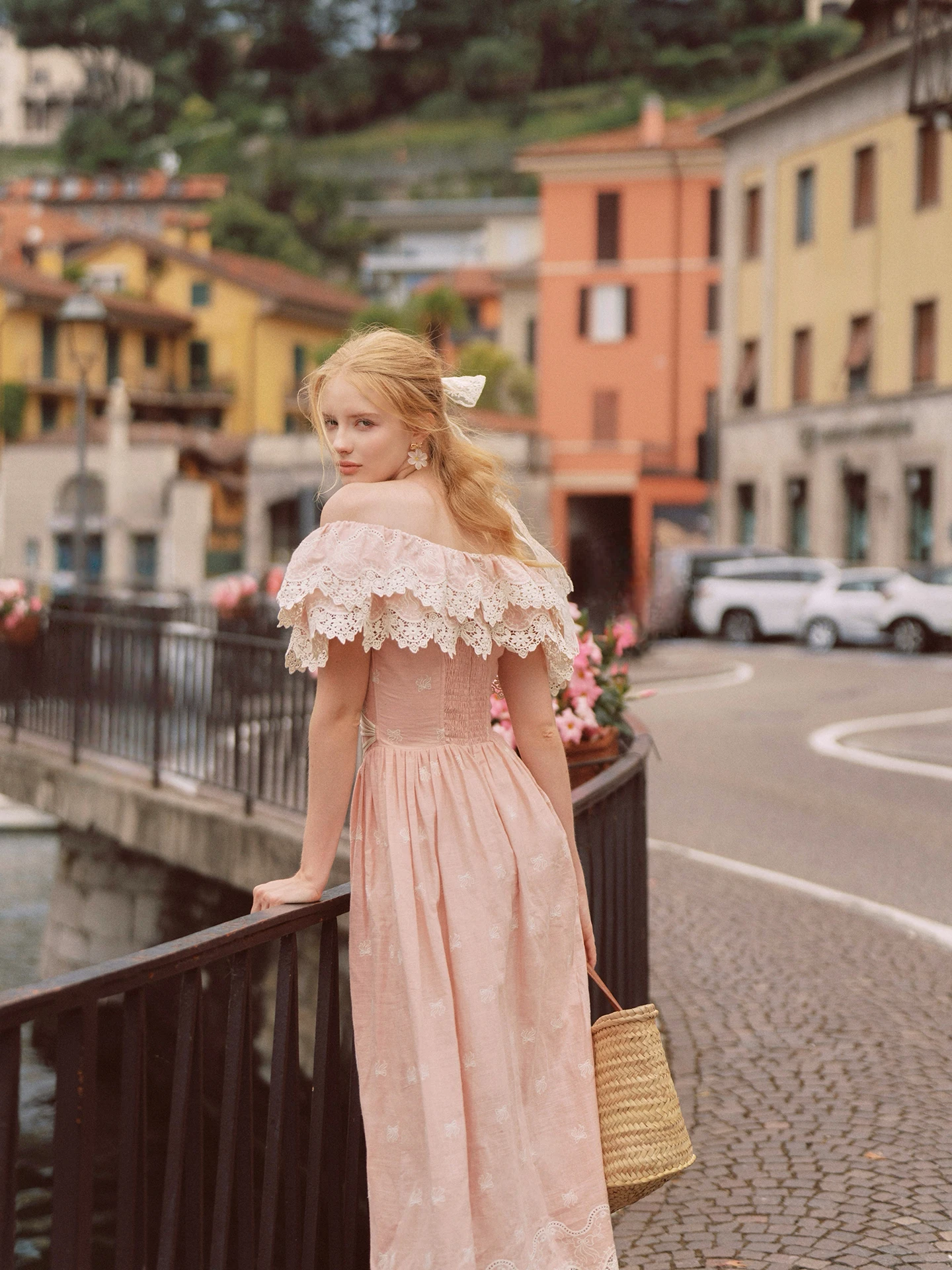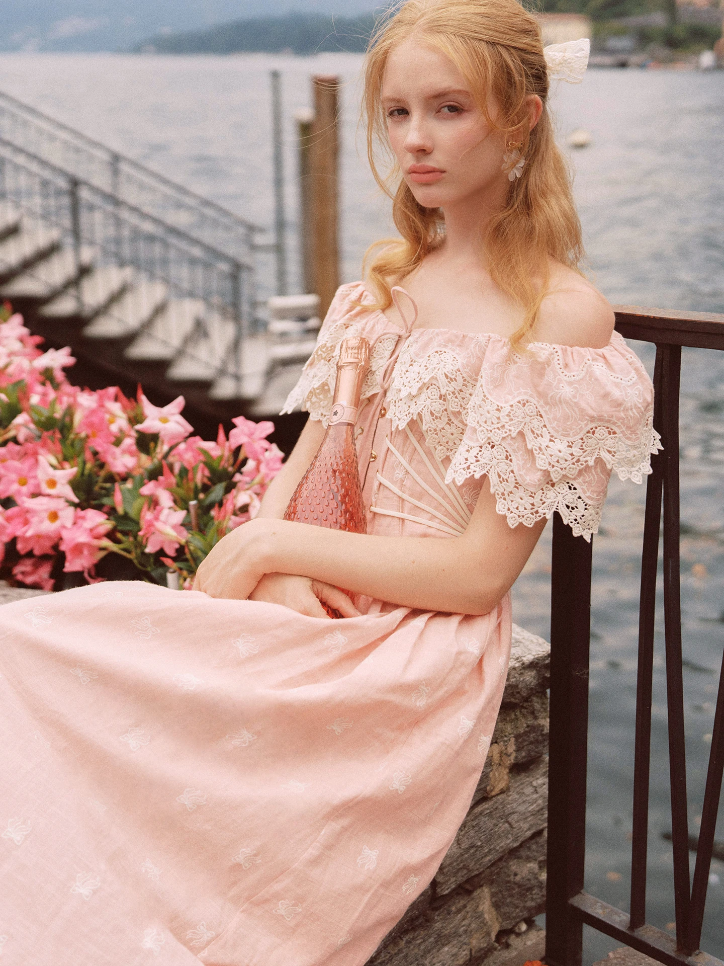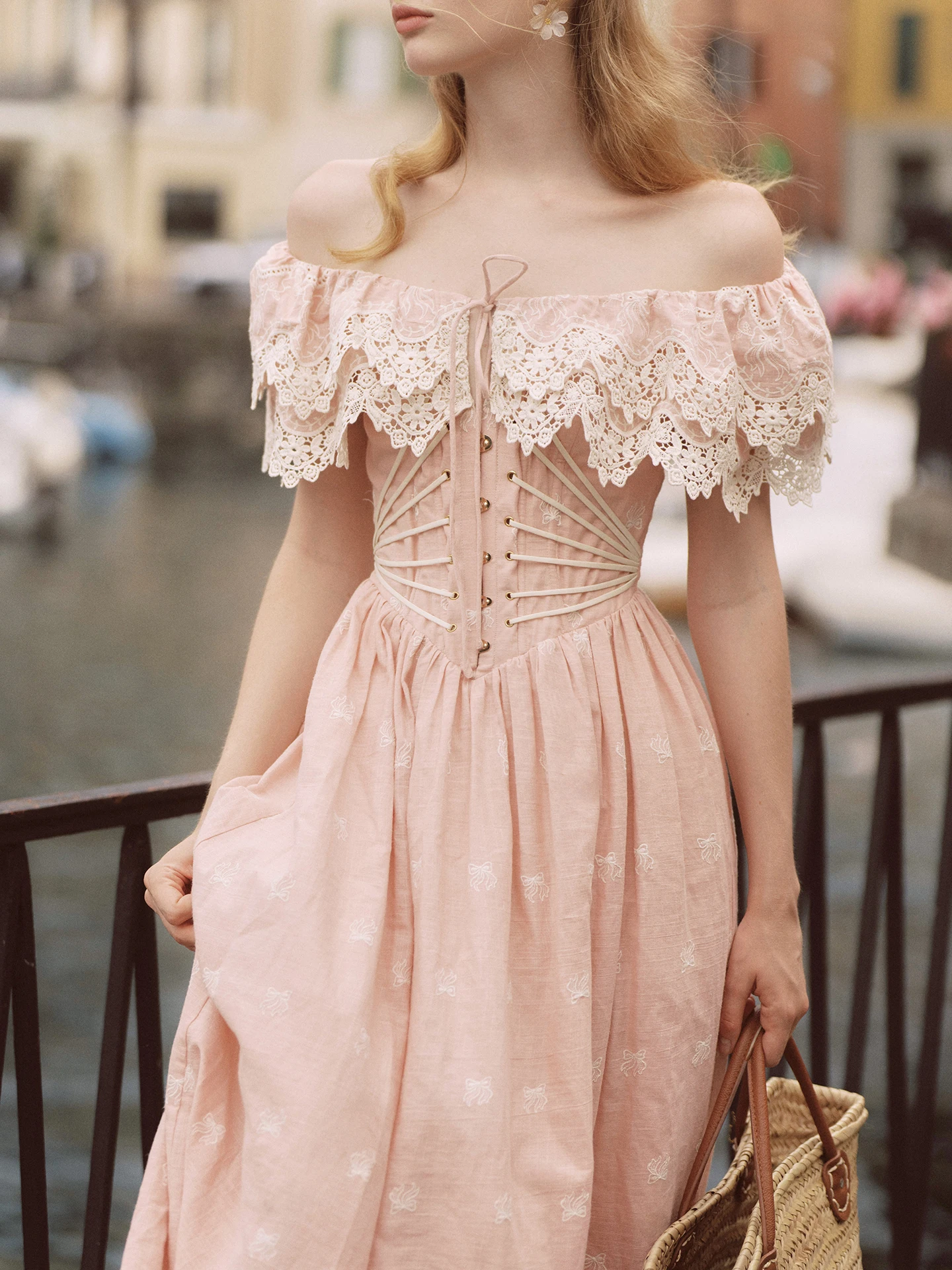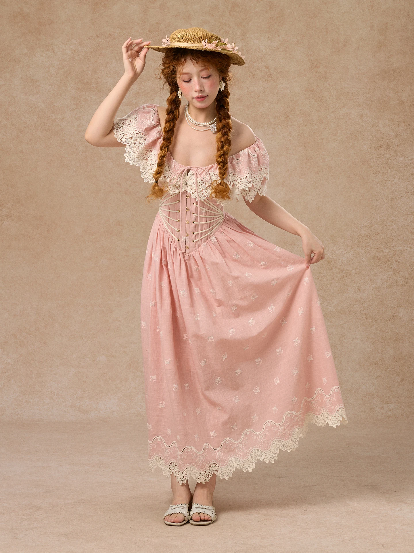 80-102cmSummer Pink Birthday Party Long Dress Women Vintage ElegantSlim Sexy Boat Neck Hollow Out Embroidery Lace Fishbone Dress