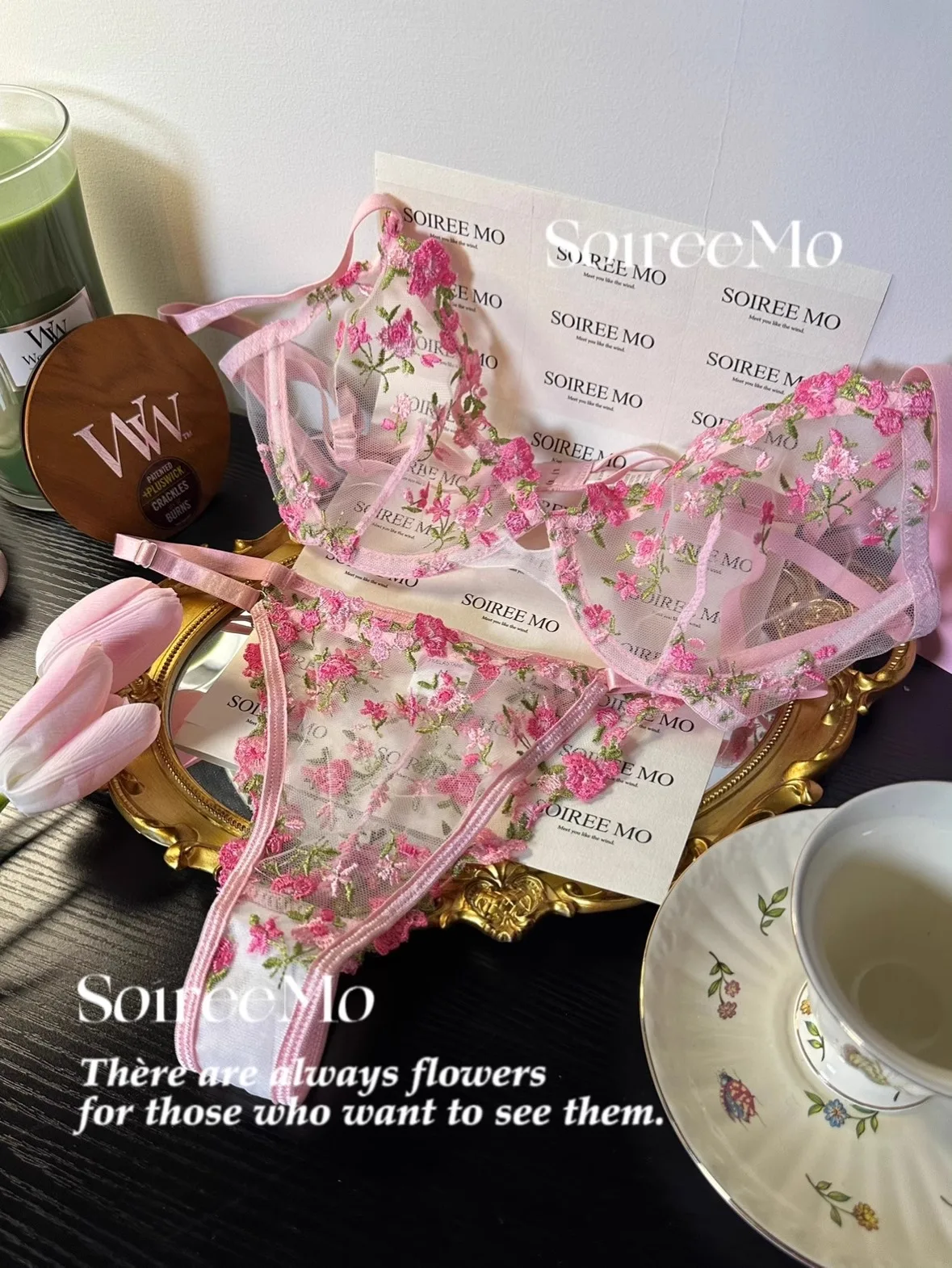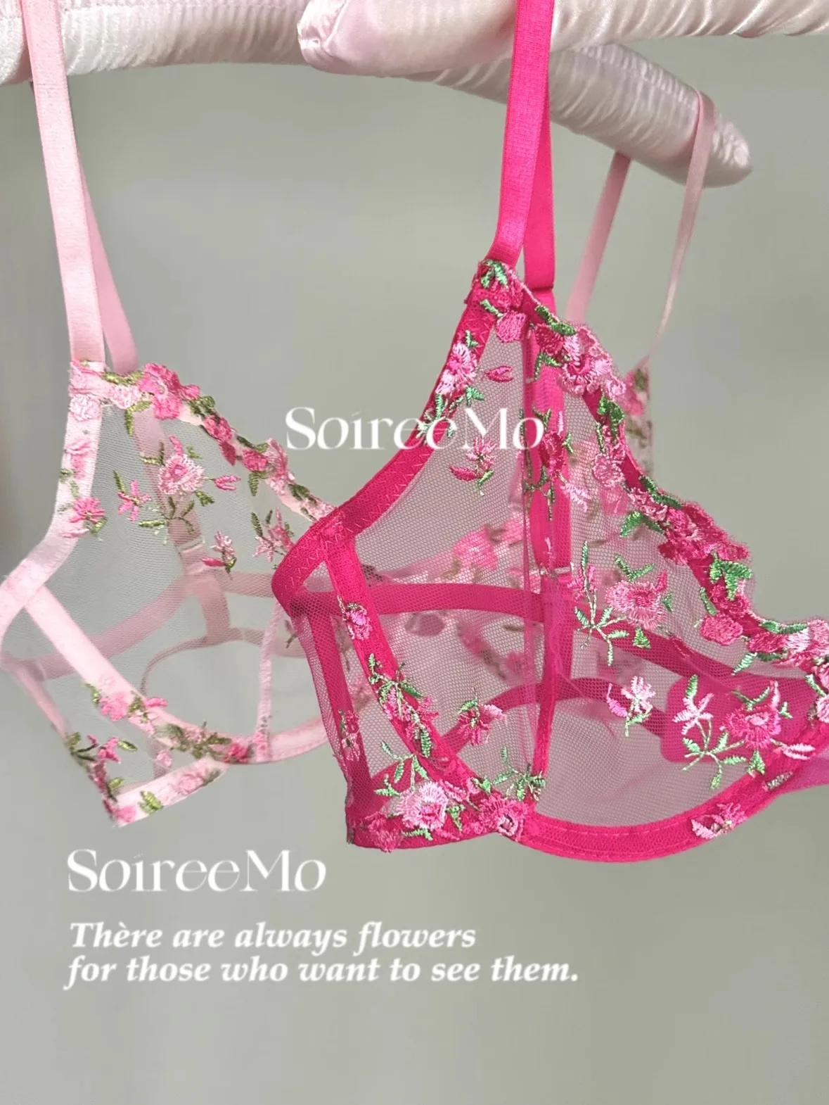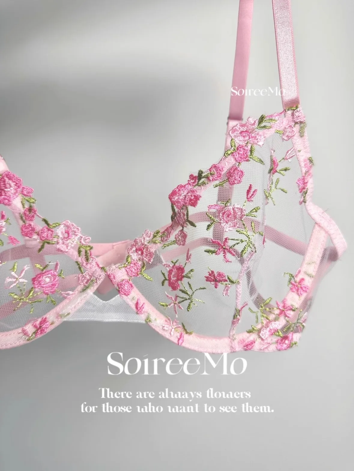 Parisian French Lingerie Set Sheer Tulle, Pink Floral Embroidery Bra Bralette, Sexy Pure Matching Set BANERDANNI Sexy Tushy Bras