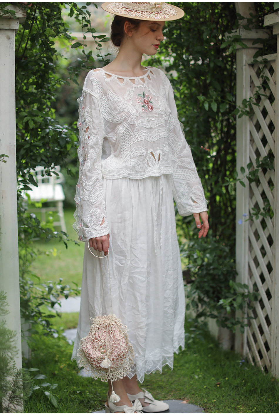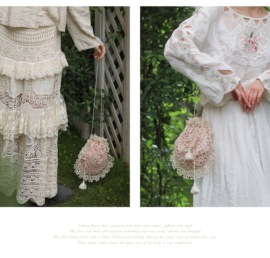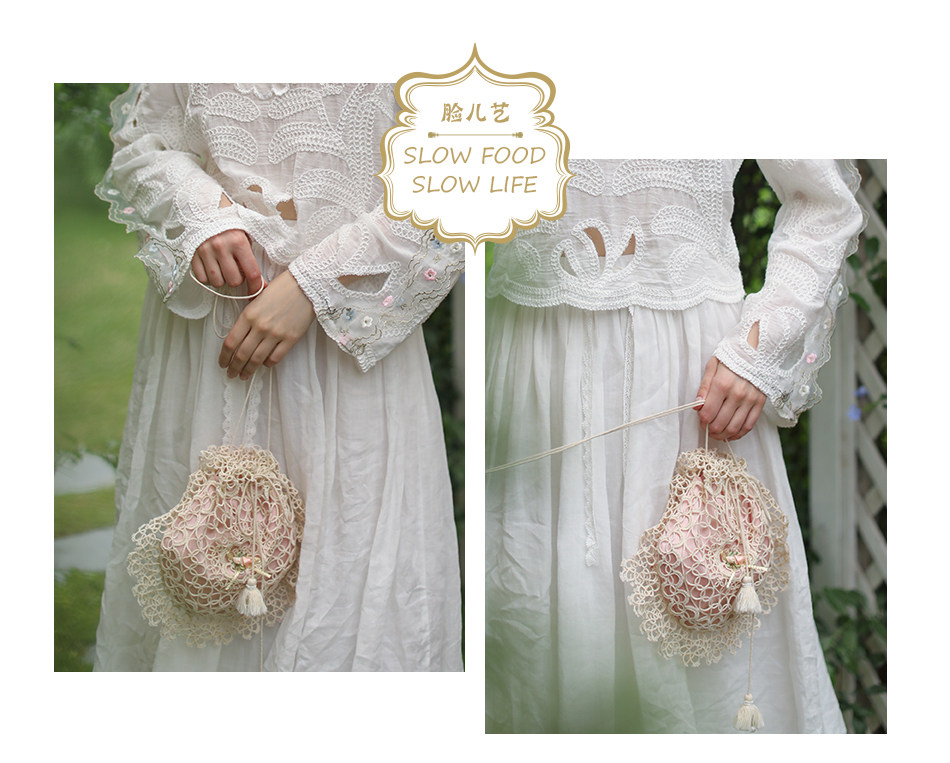 Lianer Art Hand-stitched Hollow Out Mori Kei Weaven Bags