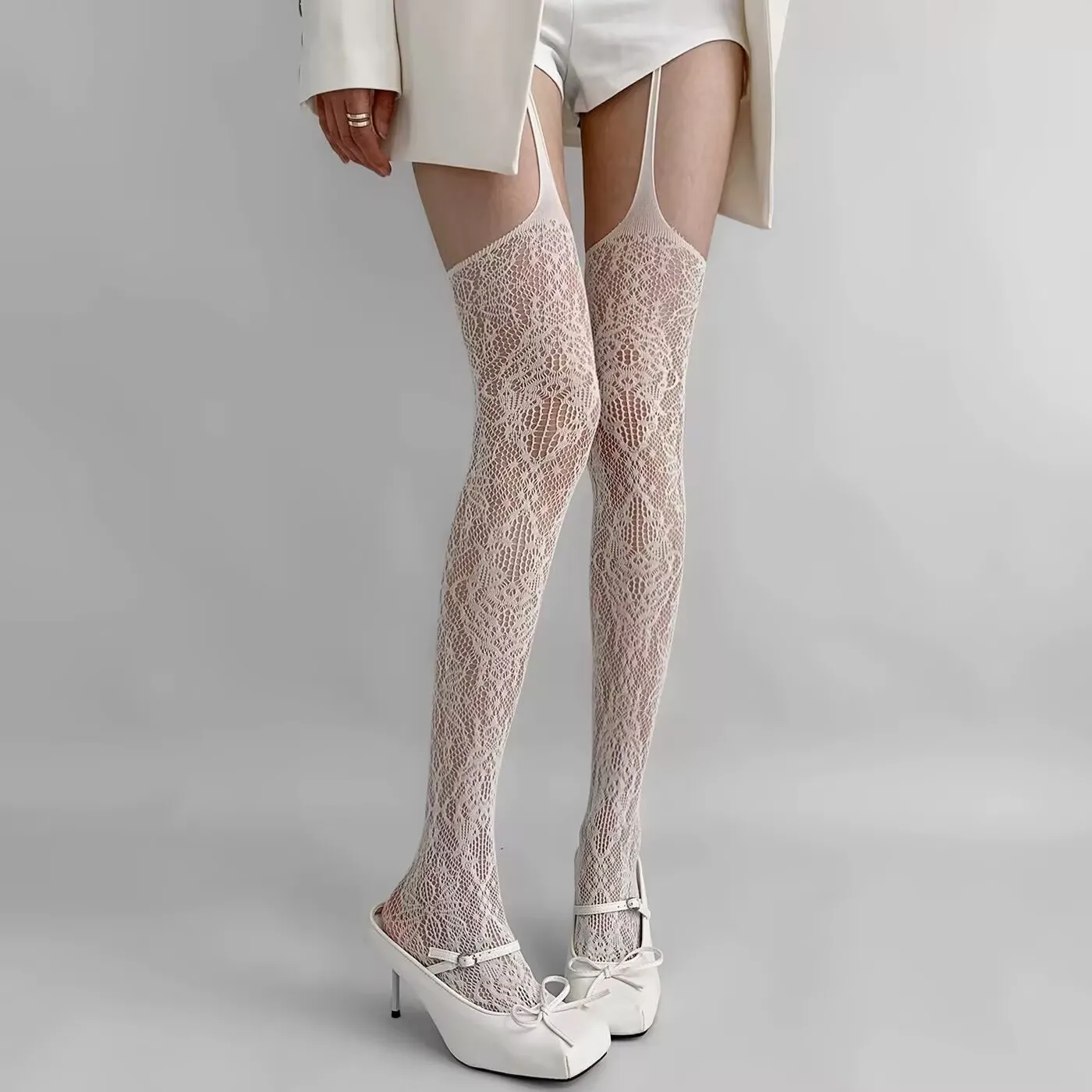 Lolita Sweet Girls Punk Style Floral Tights Colorful Parisian Thigh High Stockings Women Sheer Fishnet Suspender Tights Pantyhose Hosiery