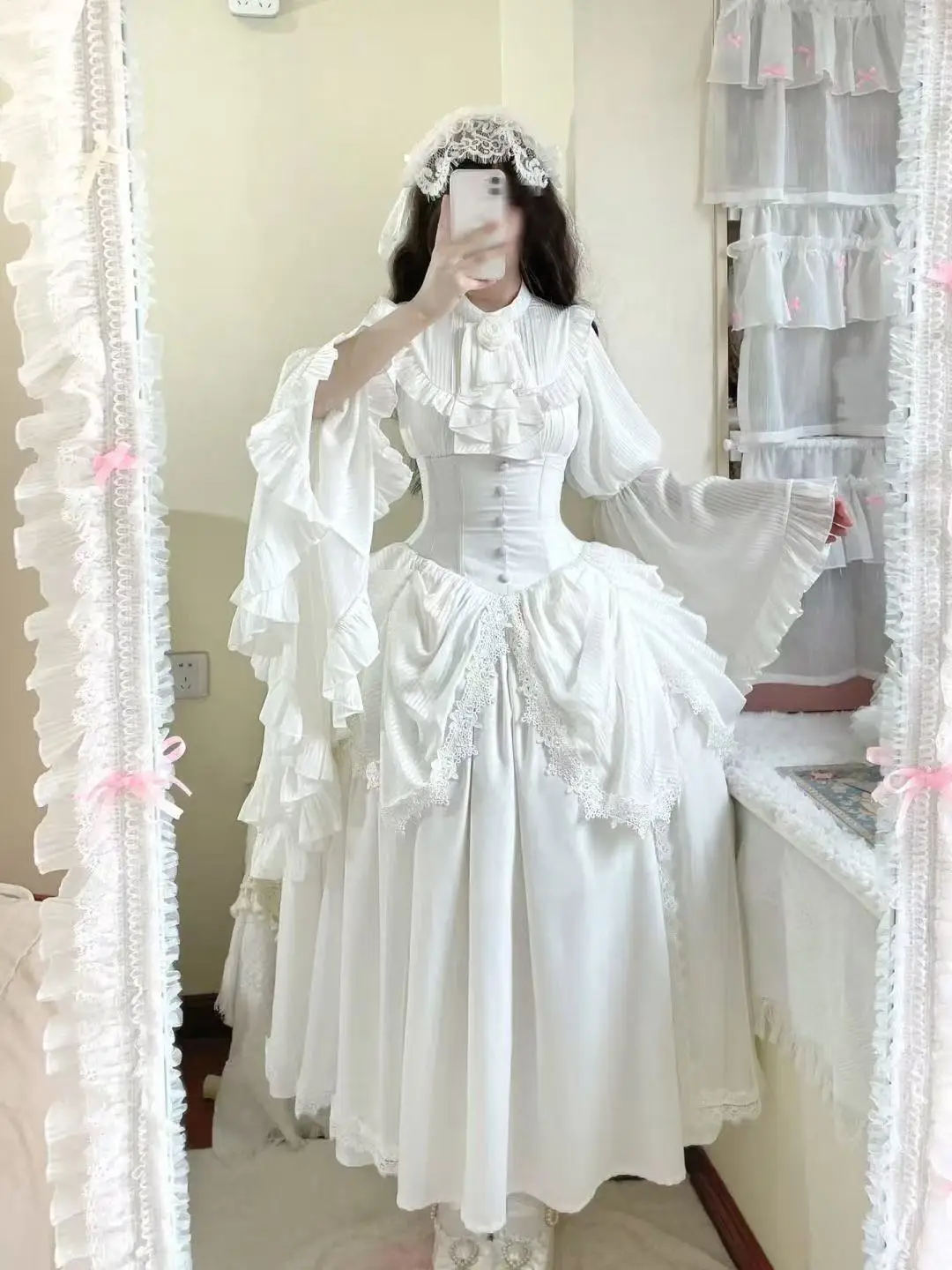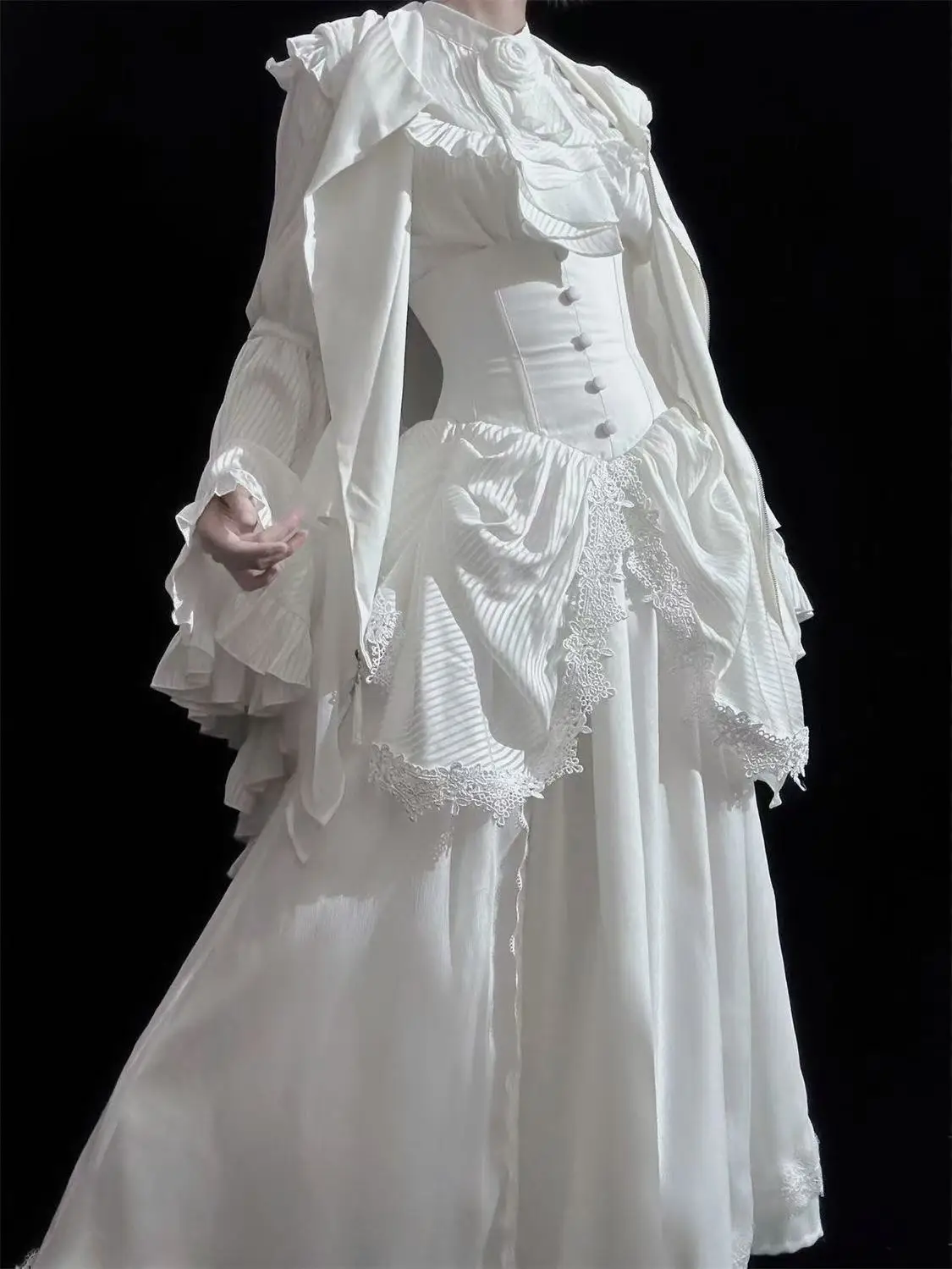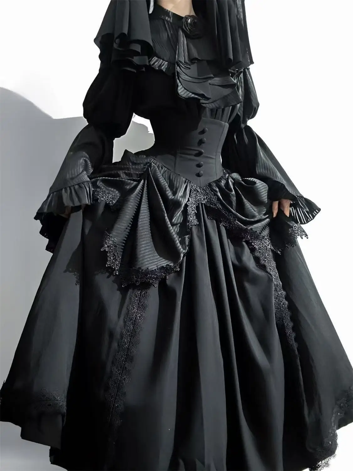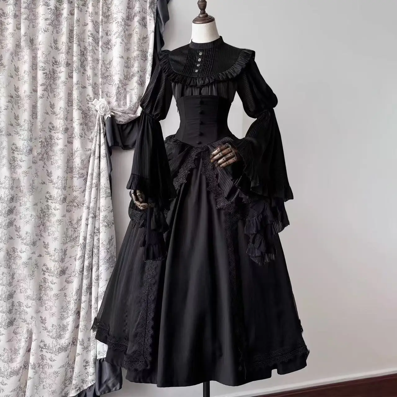 Niche Gothic Style Lolita Skirt Dark Black Wave Flower Edge Women Banquet Gown Vintage Halloween Carnival Event Cosplay Costume