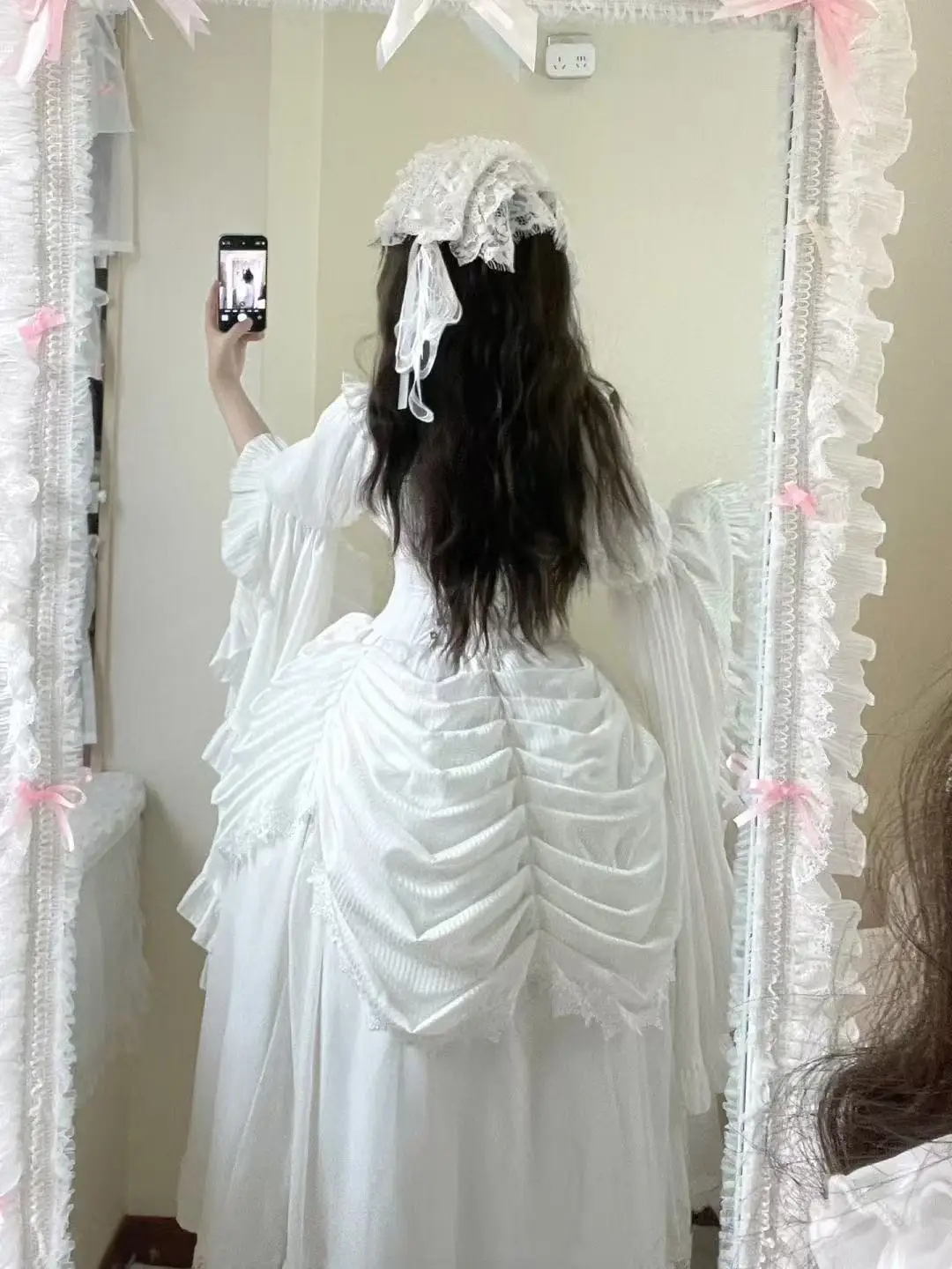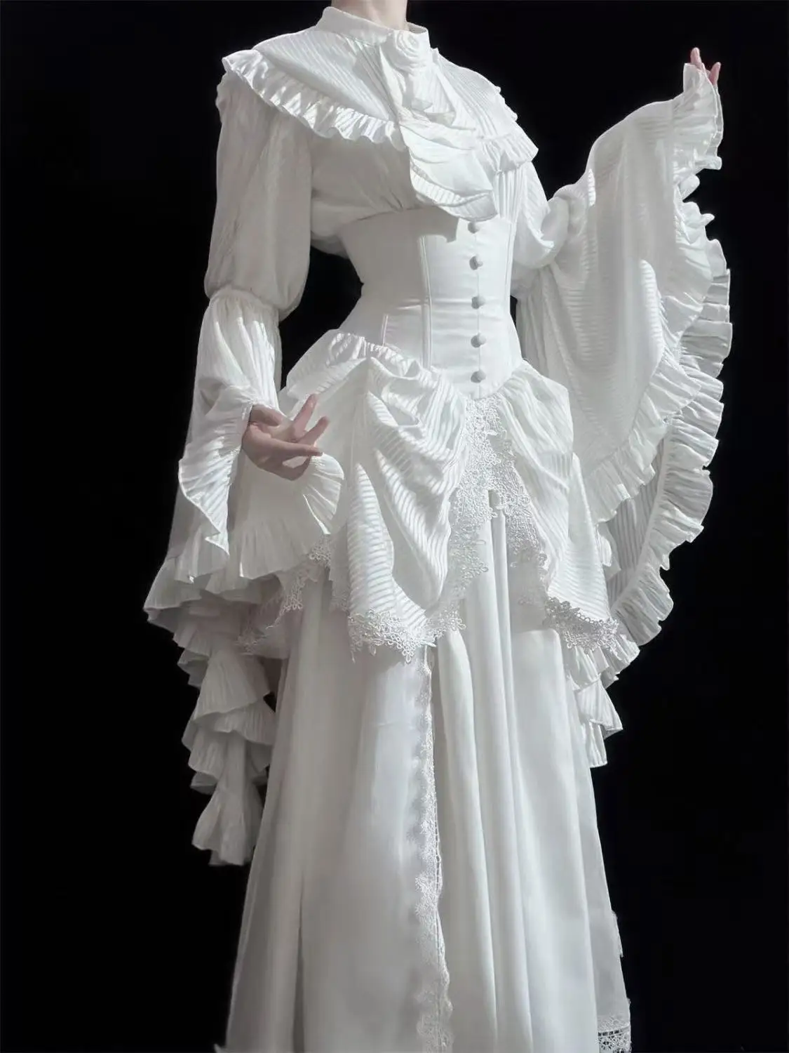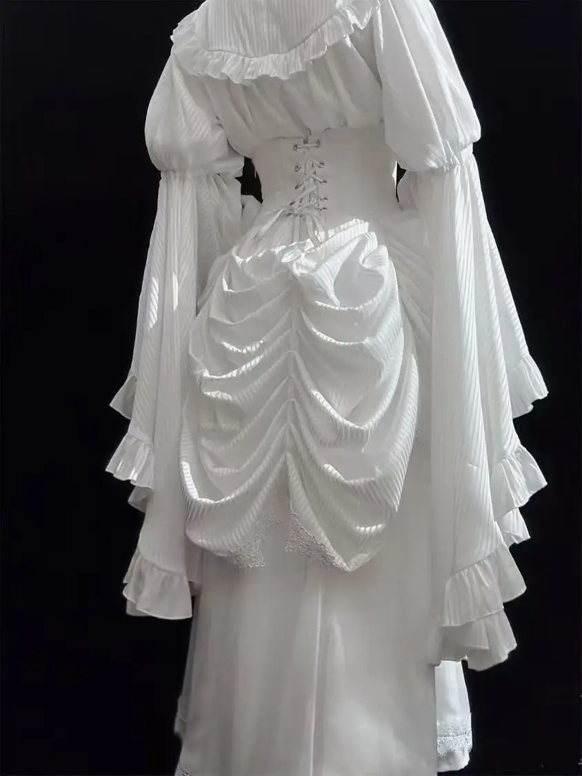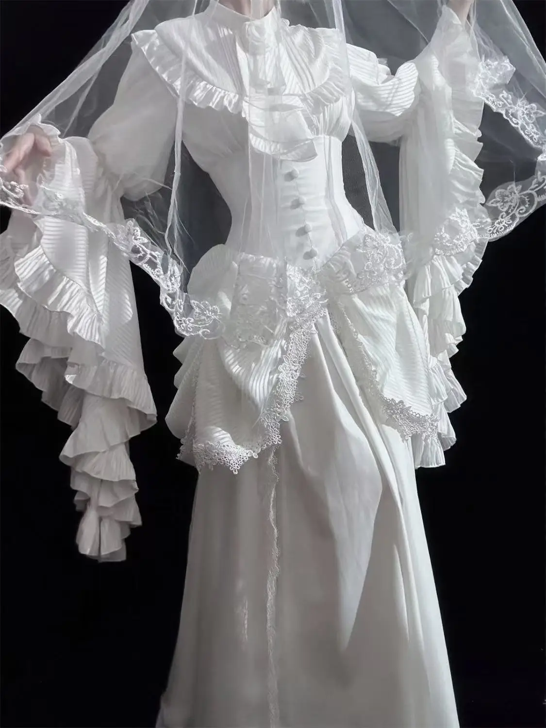 Niche Gothic Style Lolita Skirt Dark Black Wave Flower Edge Women Banquet Gown Vintage Halloween Carnival Event Cosplay Costume
