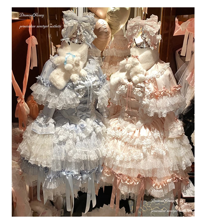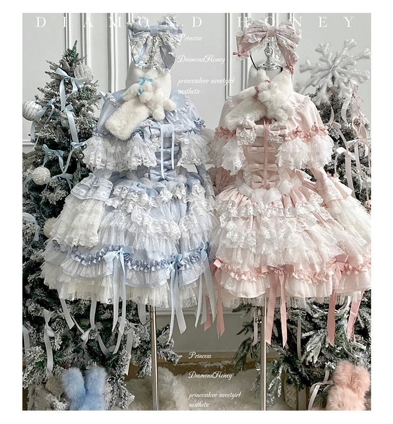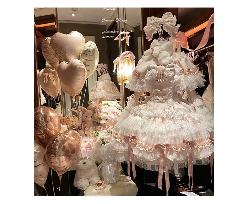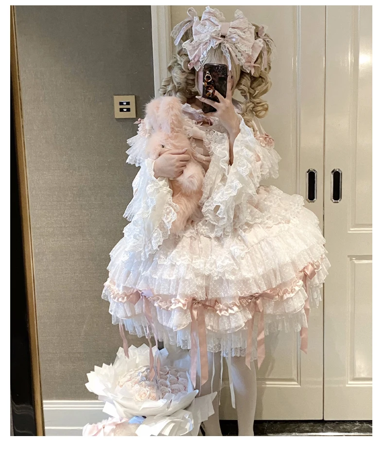 Pink Lolita Princess Dress Women's Bow Lace Heavy Industry Sweet Elegant Birthday Party Evening Dress Lady Suspender Dress Cloak