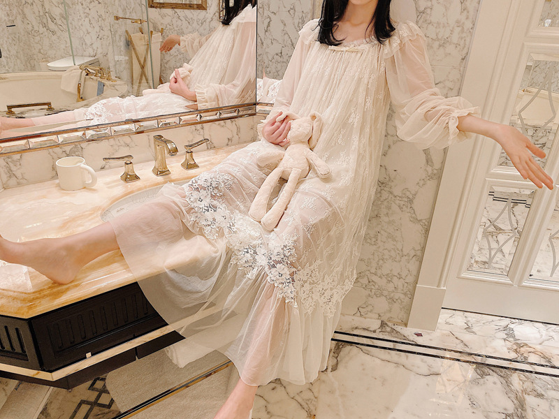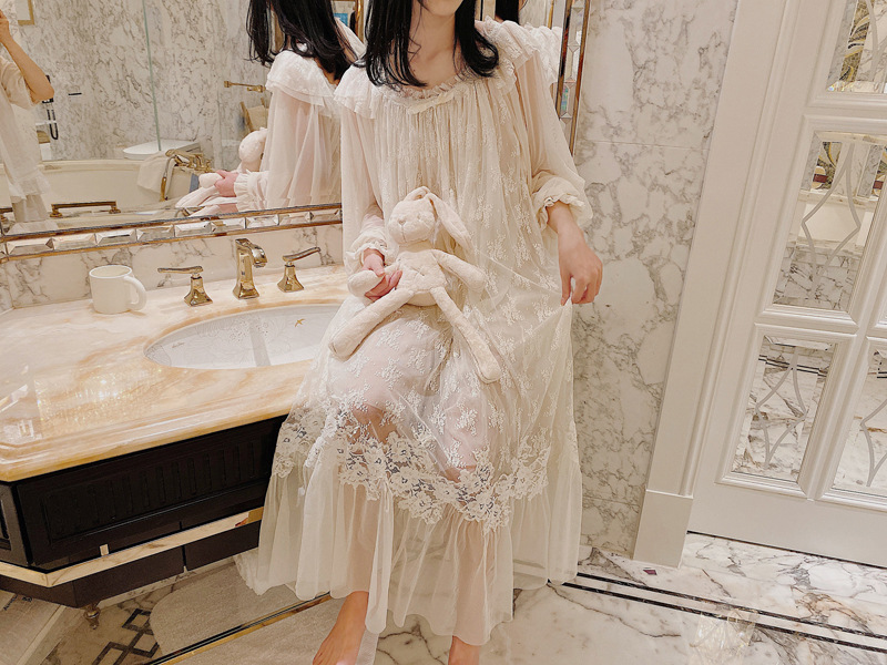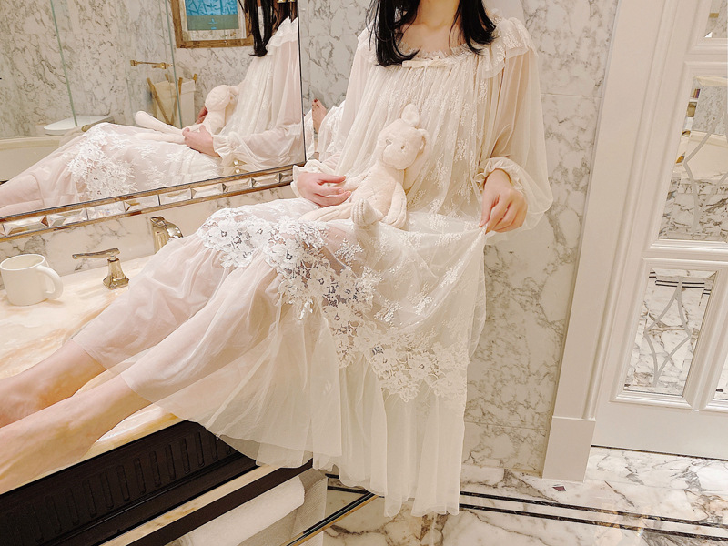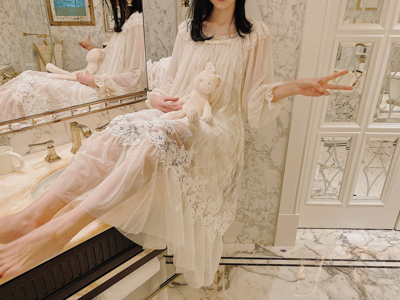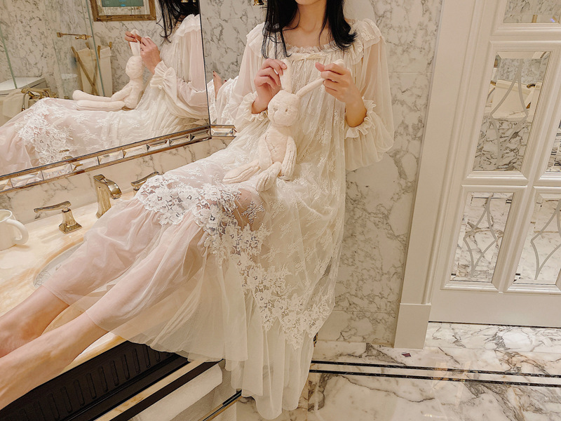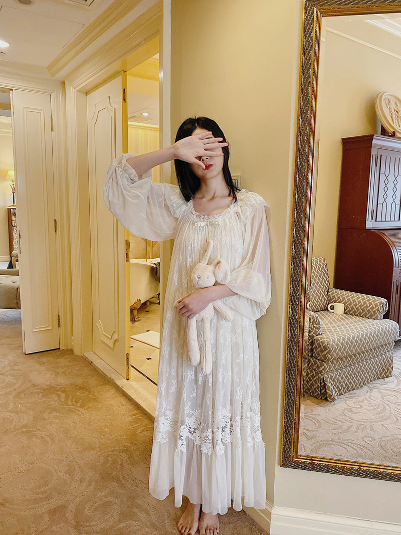 Spring And Autumn French Sexy Lace Sweet Princess Nightdress Pajamas