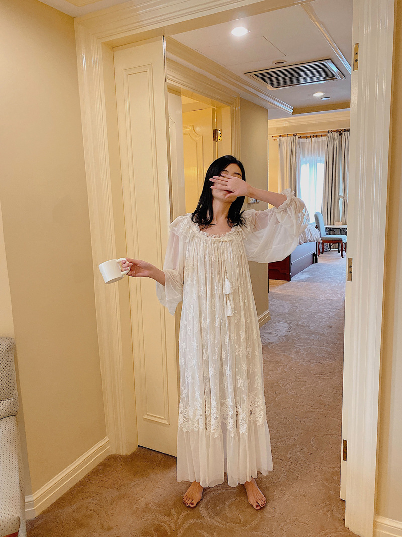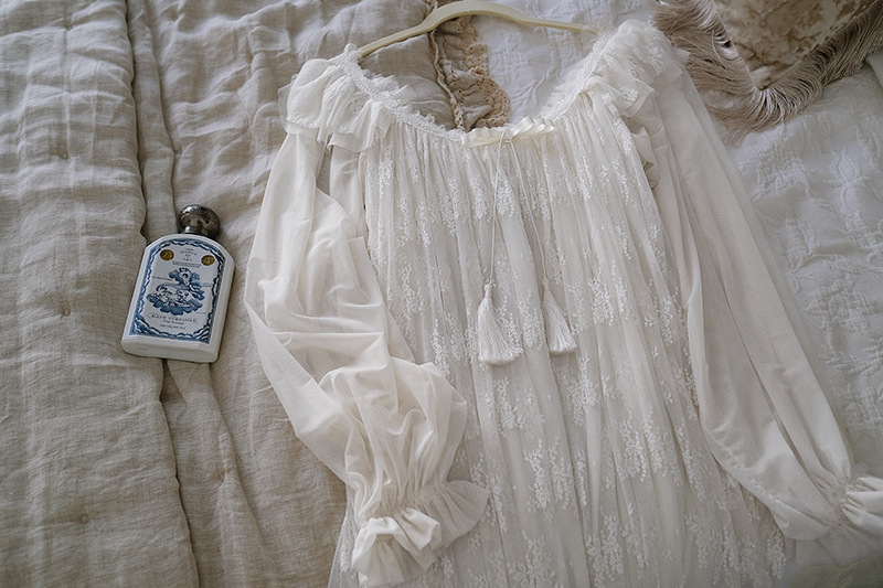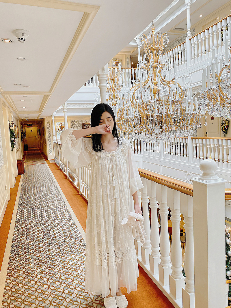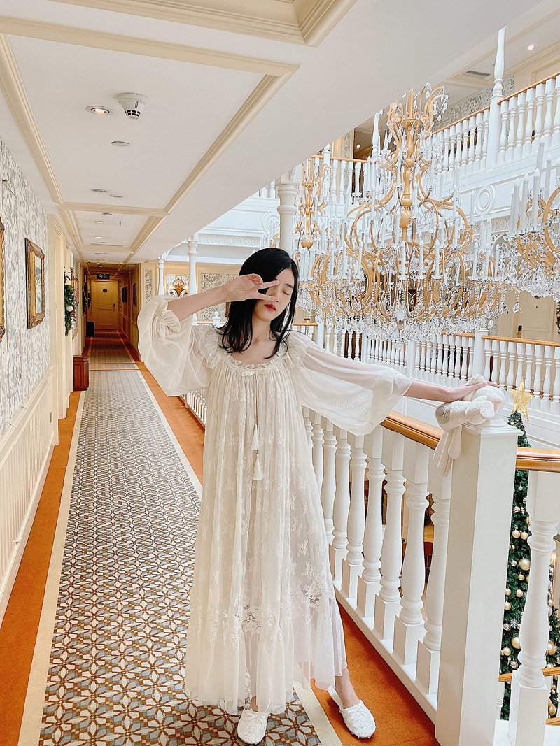 Spring And Autumn French Sexy Lace Sweet Princess Nightdress Pajamas