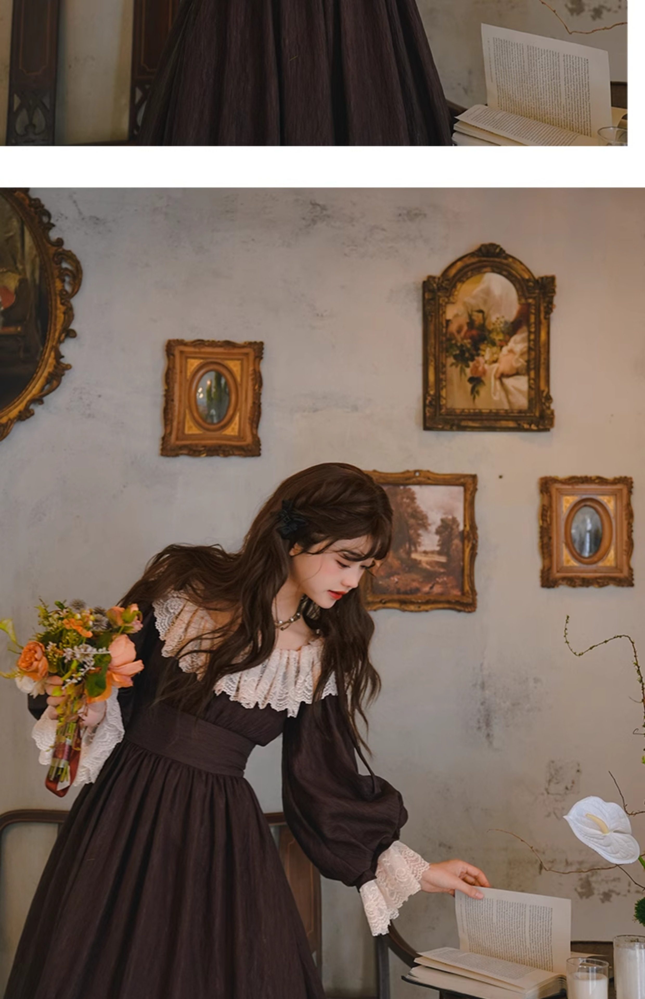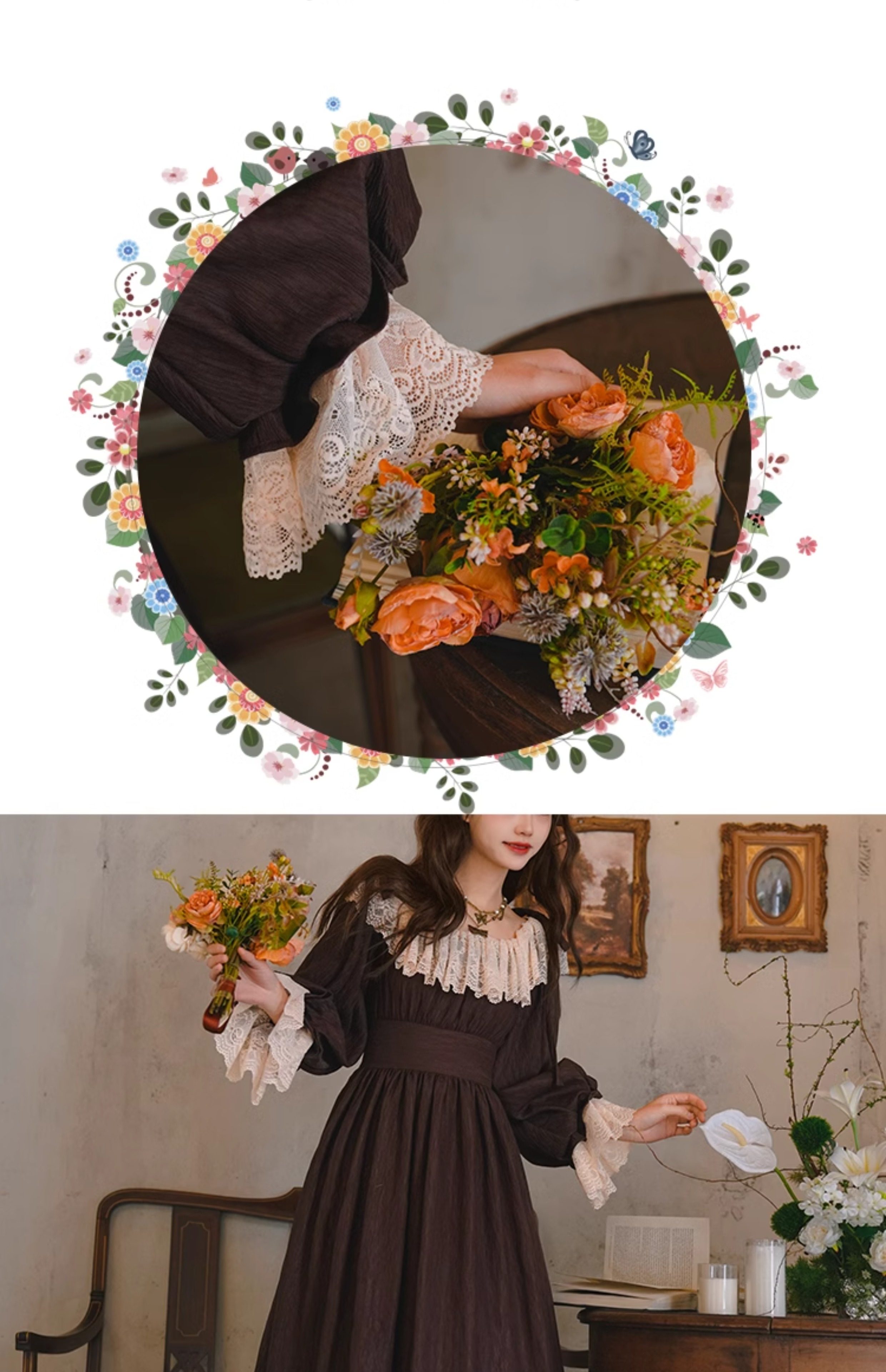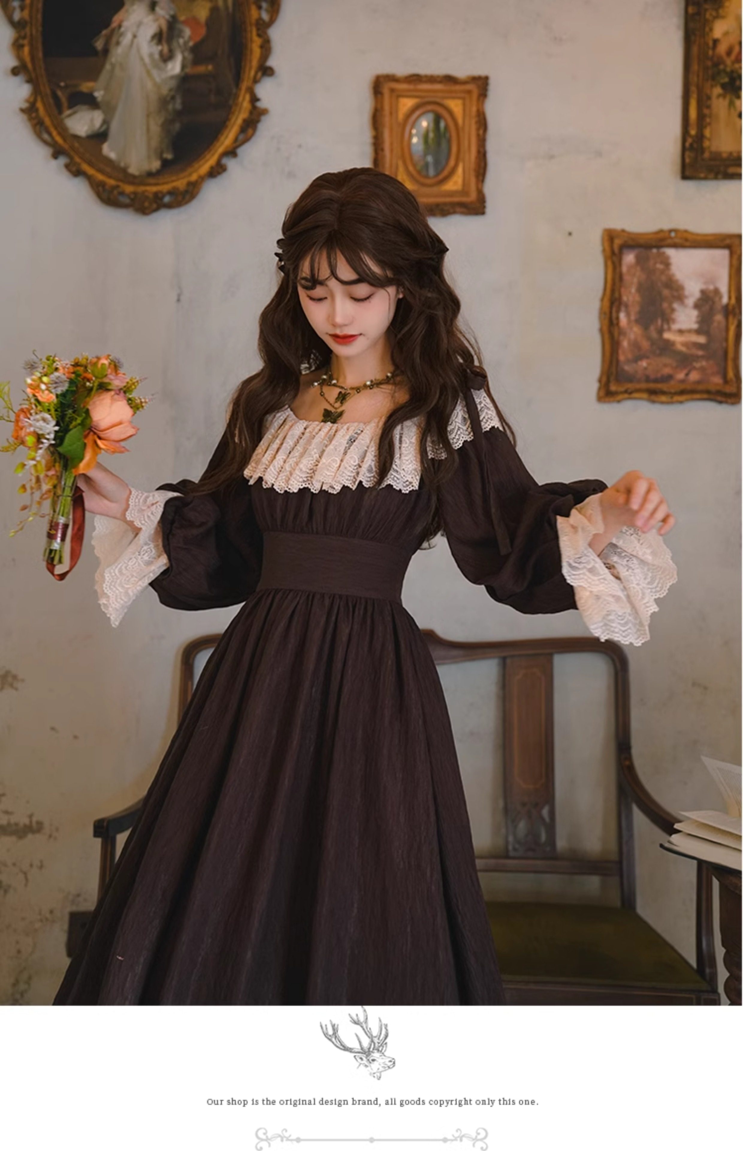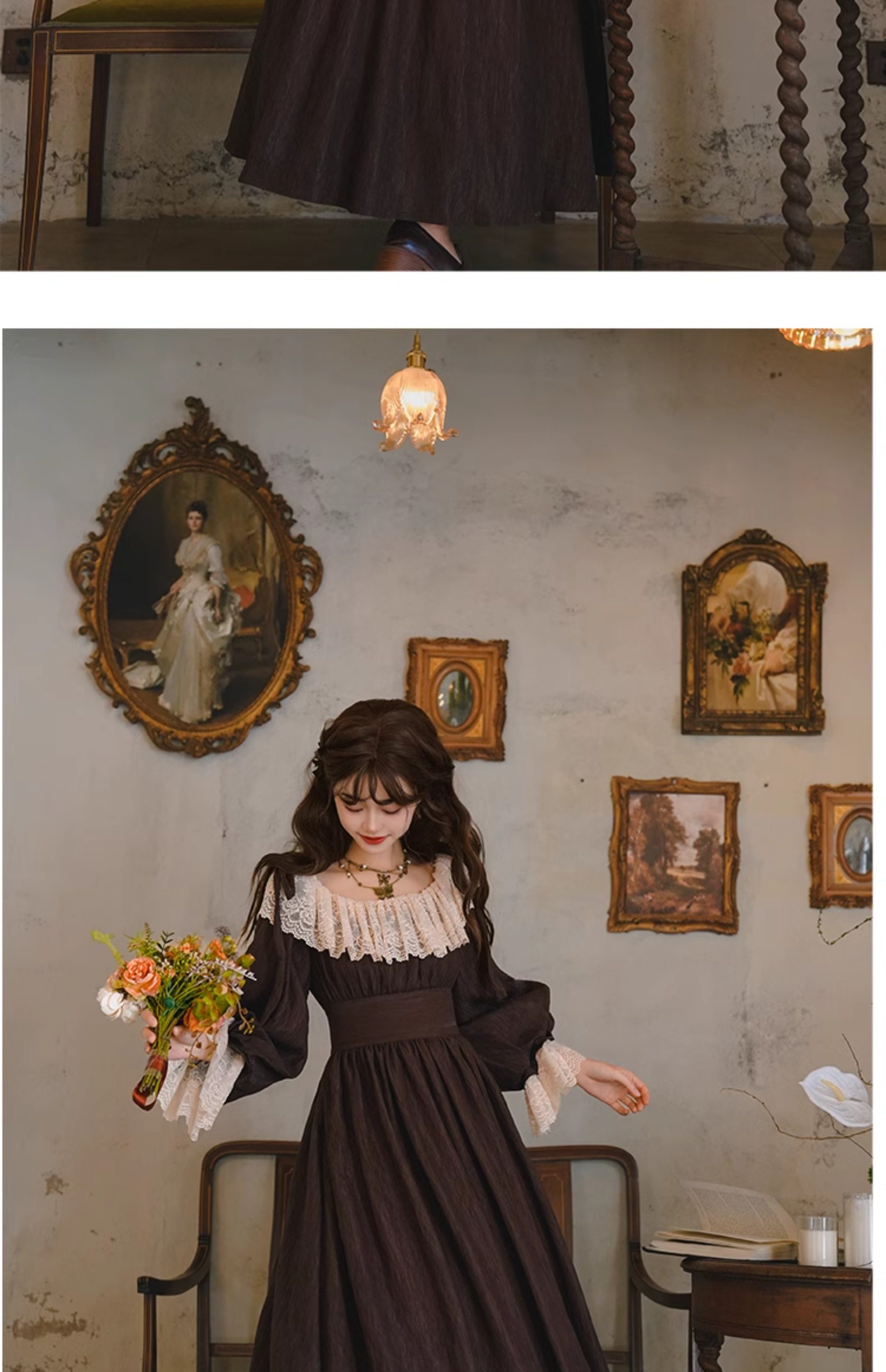 Parisian Women French Court Retro Lace Corset Puff Sleeve Jacquard Texture Dress