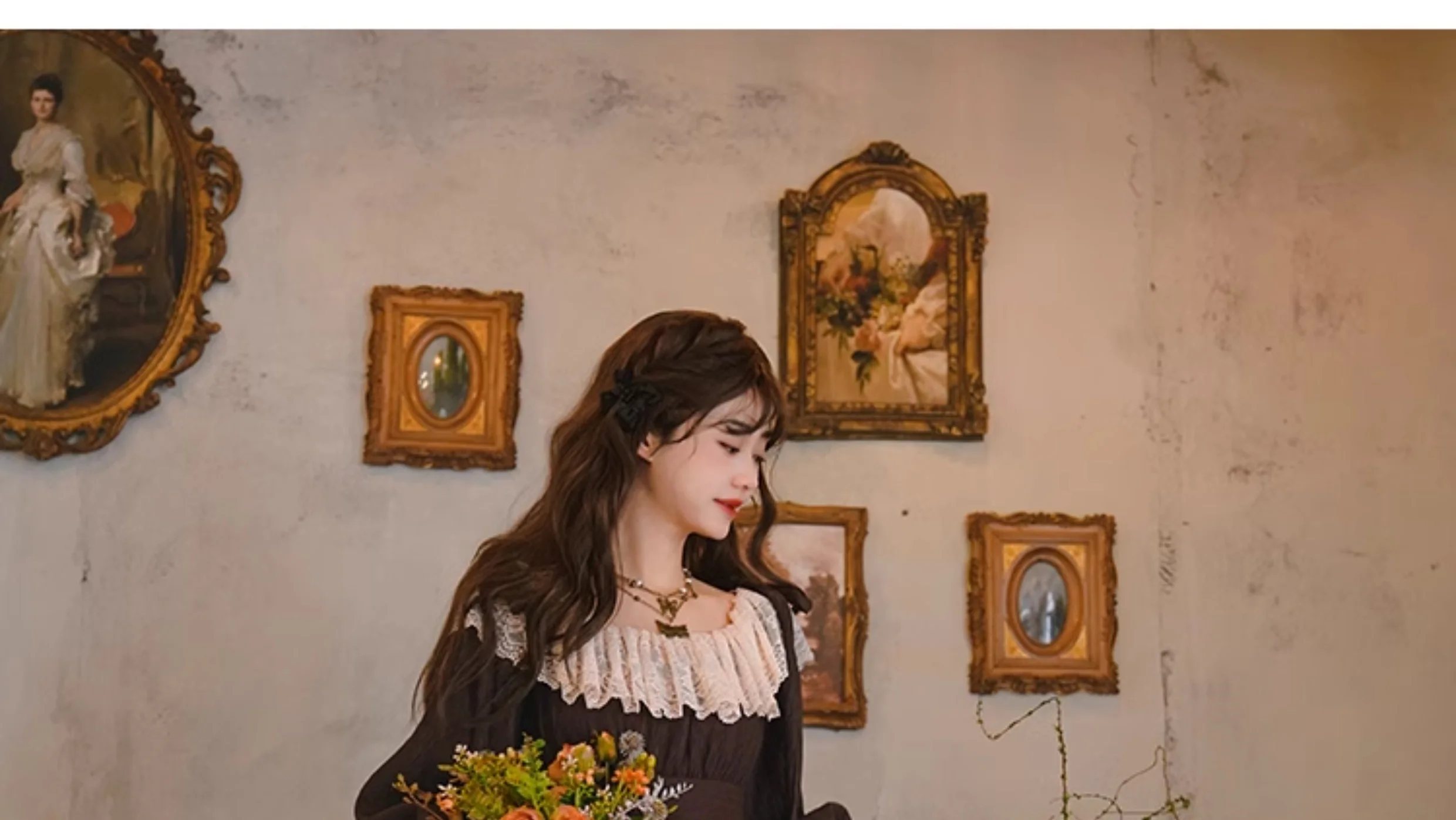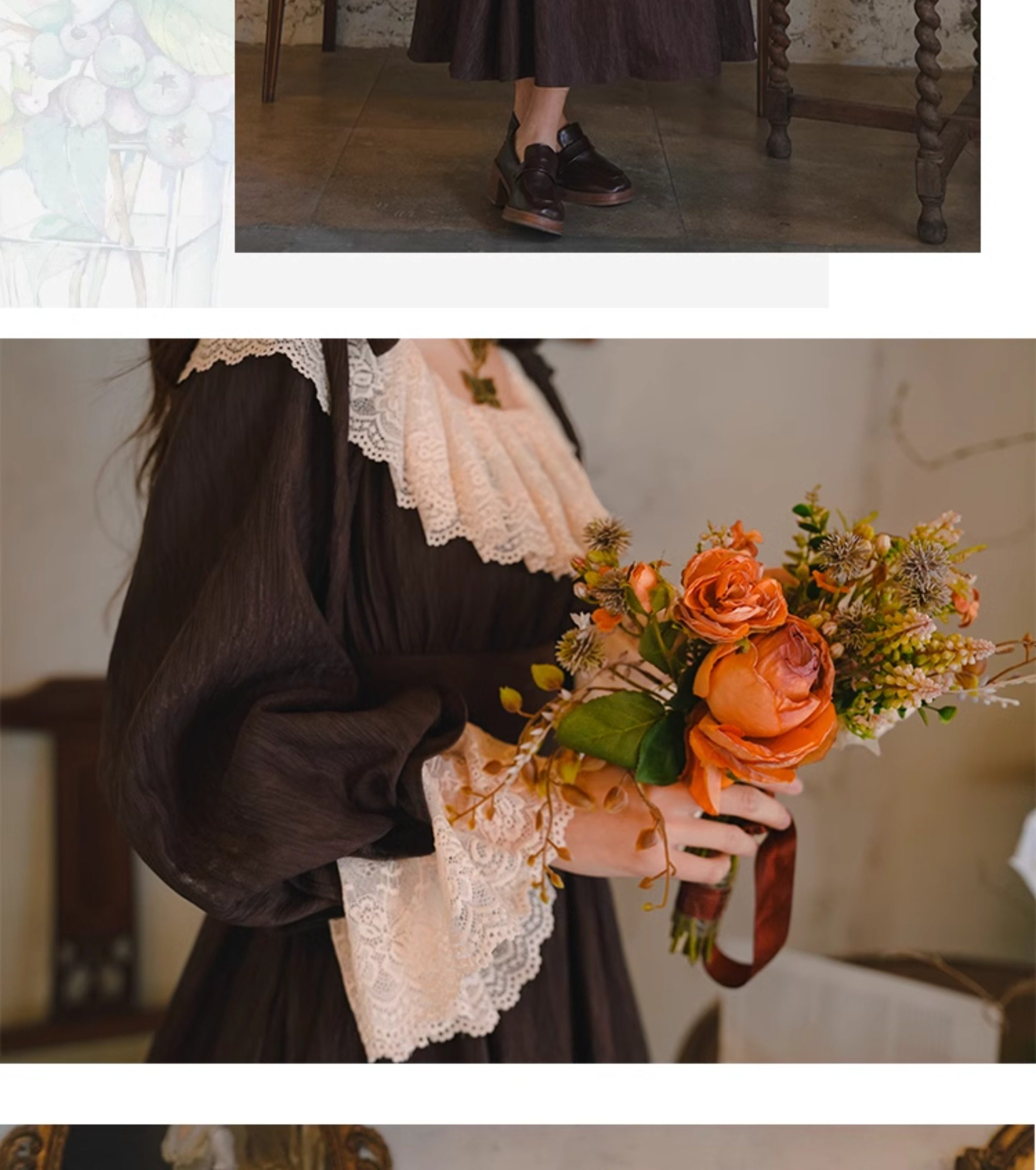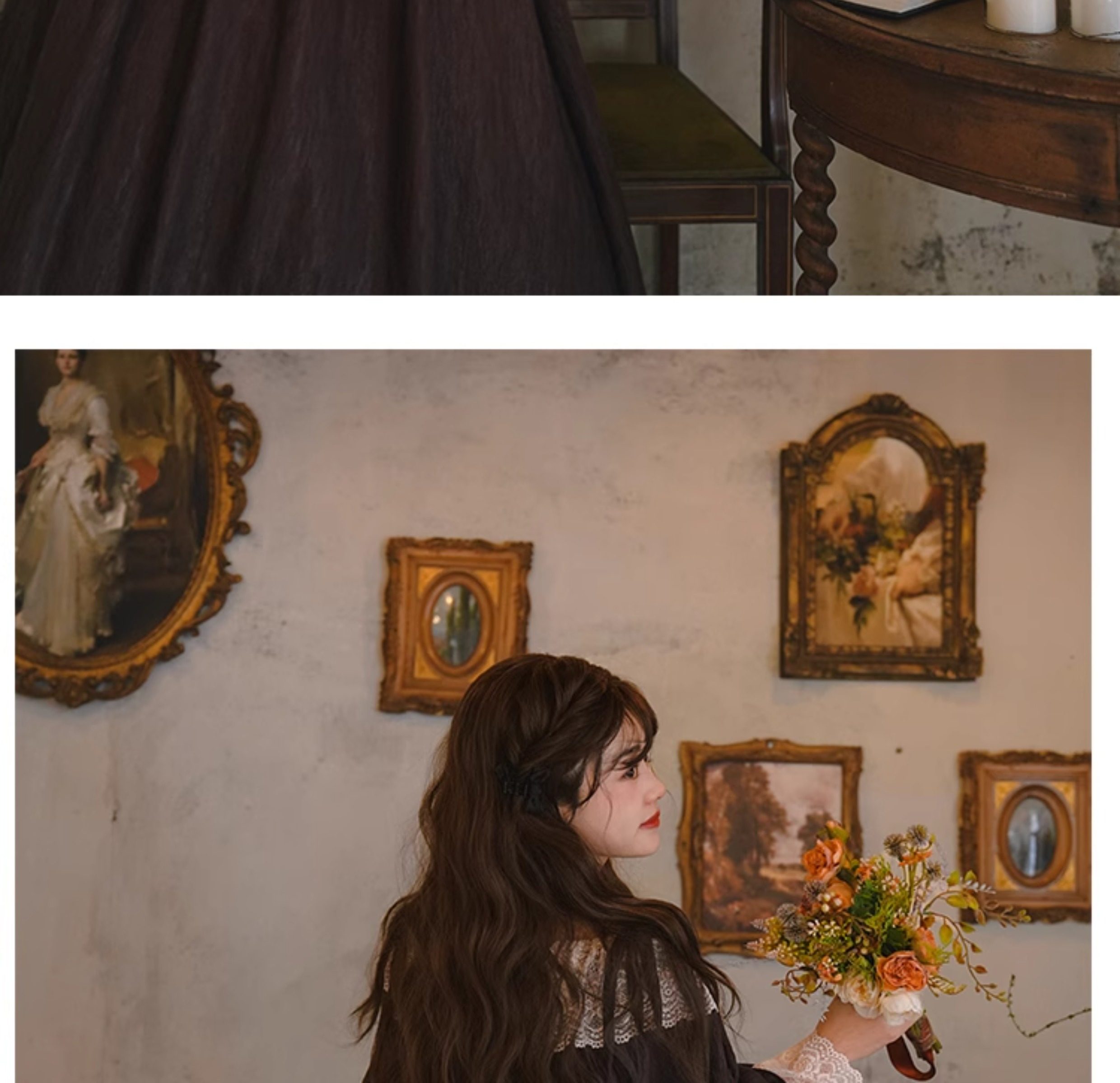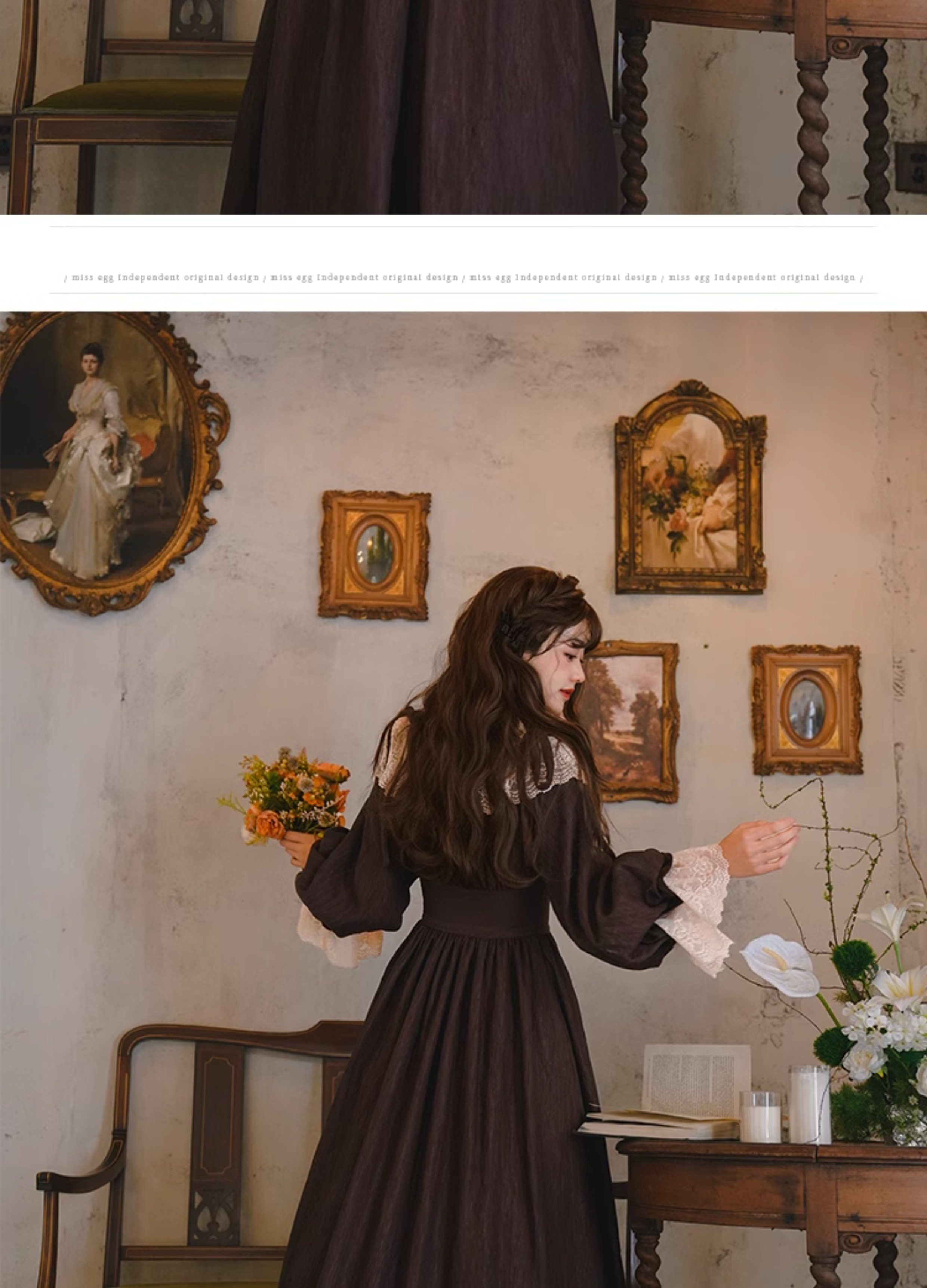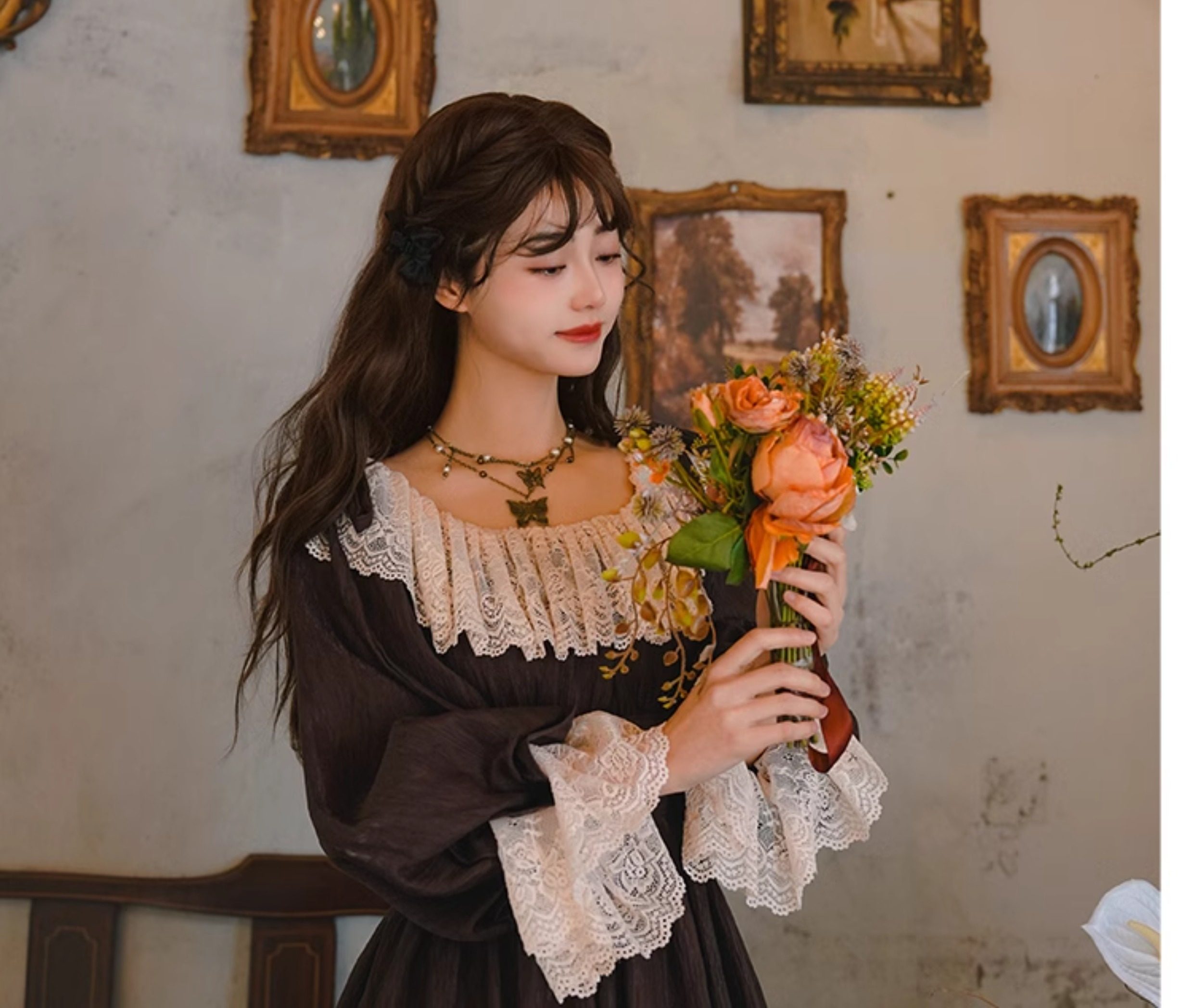 Parisian Women French Court Retro Lace Corset Puff Sleeve Jacquard Texture Dress