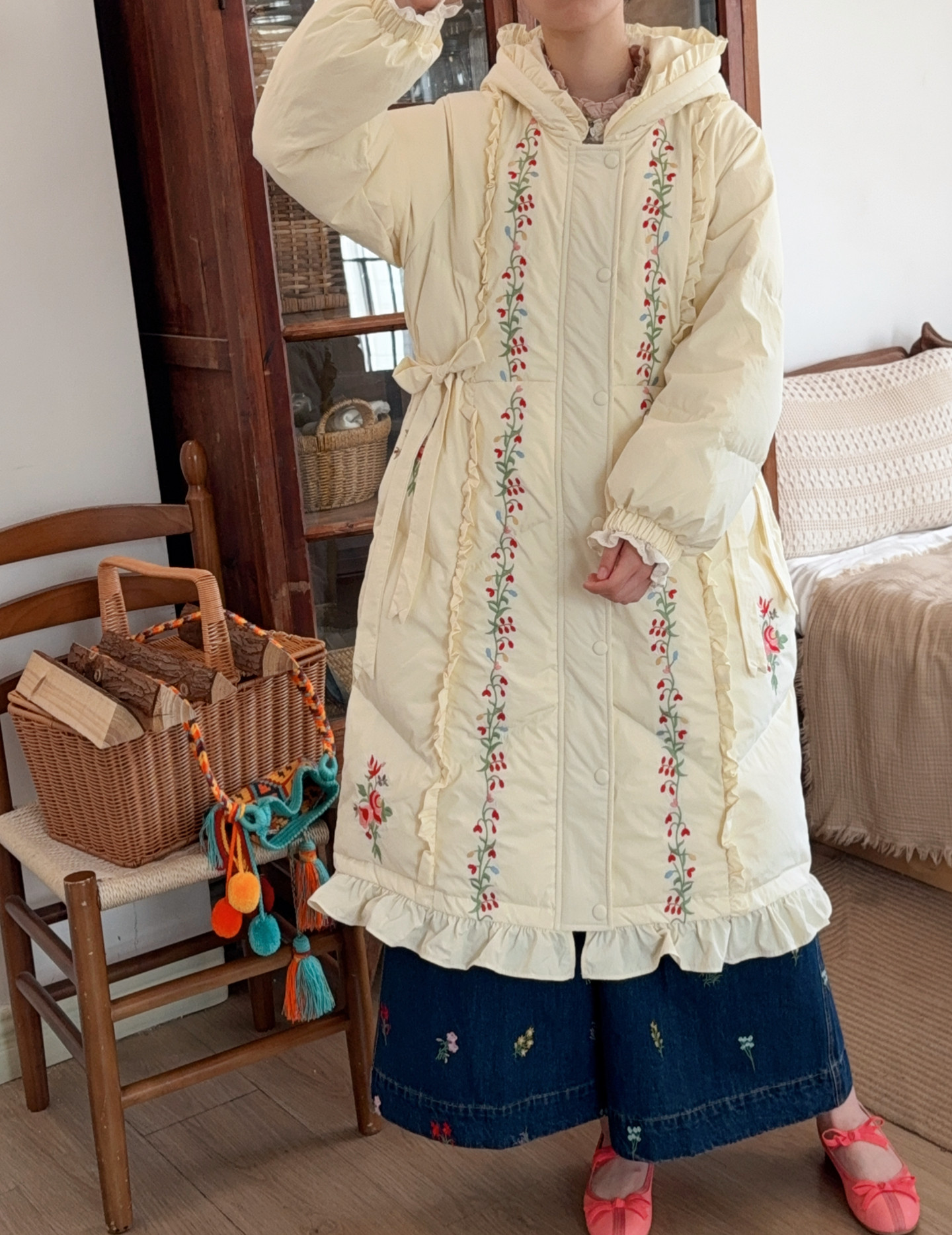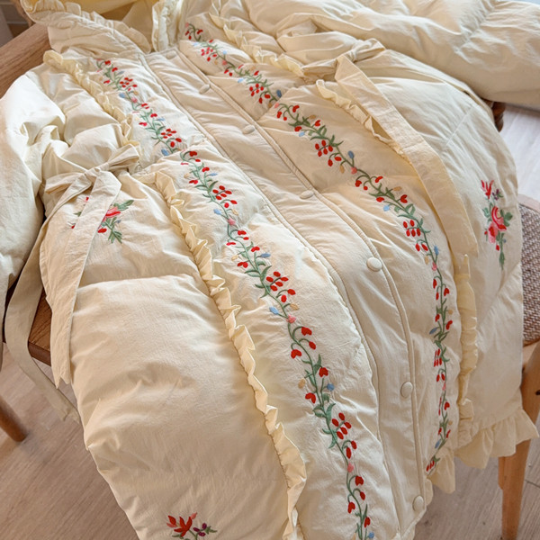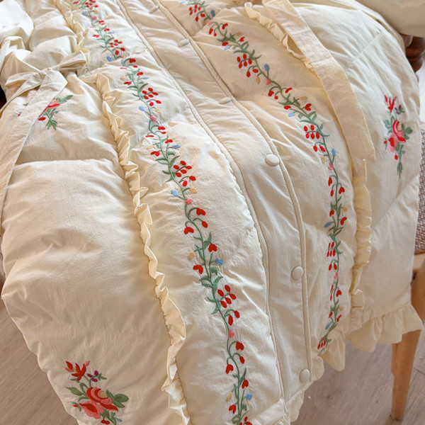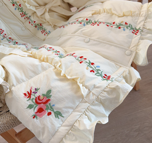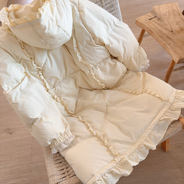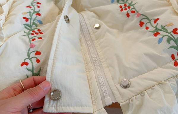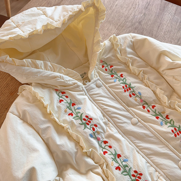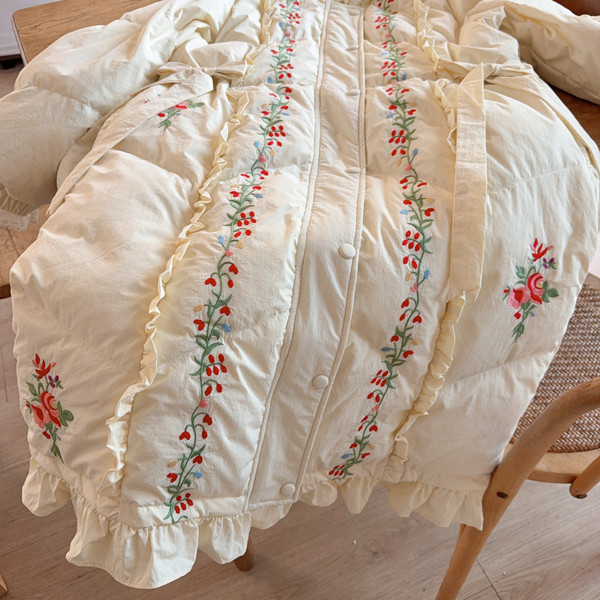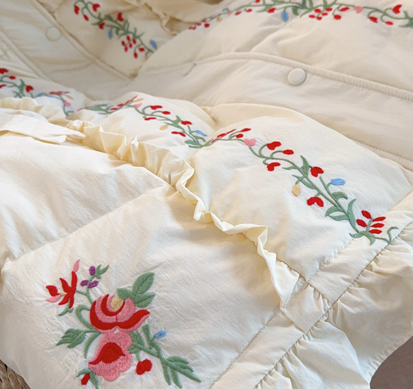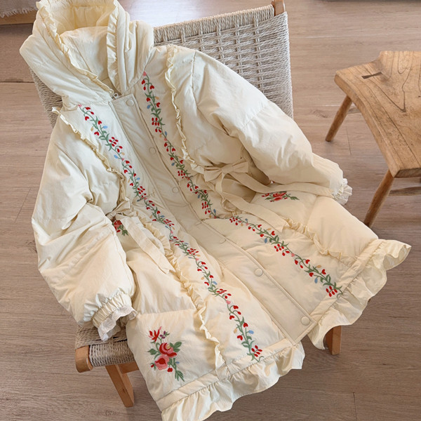 Parisian Women Full Sleeve Long Mid-Calf Thick Outerwear Hoode Zipper Down Jacket Embroidery Warm Coats Japanese Style