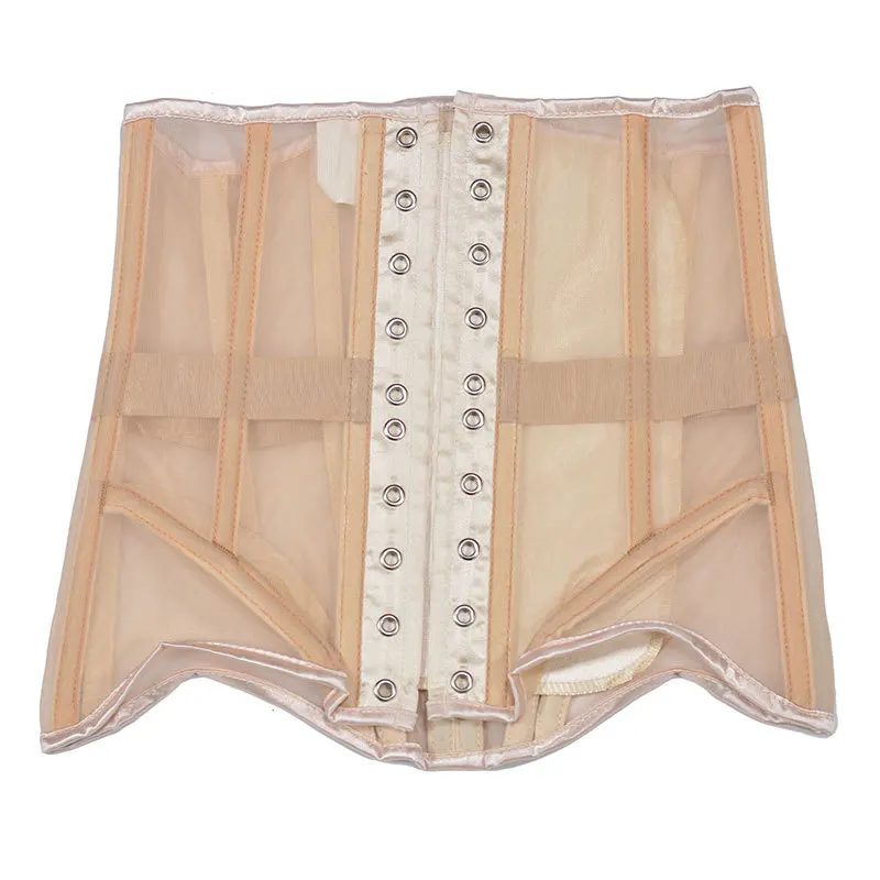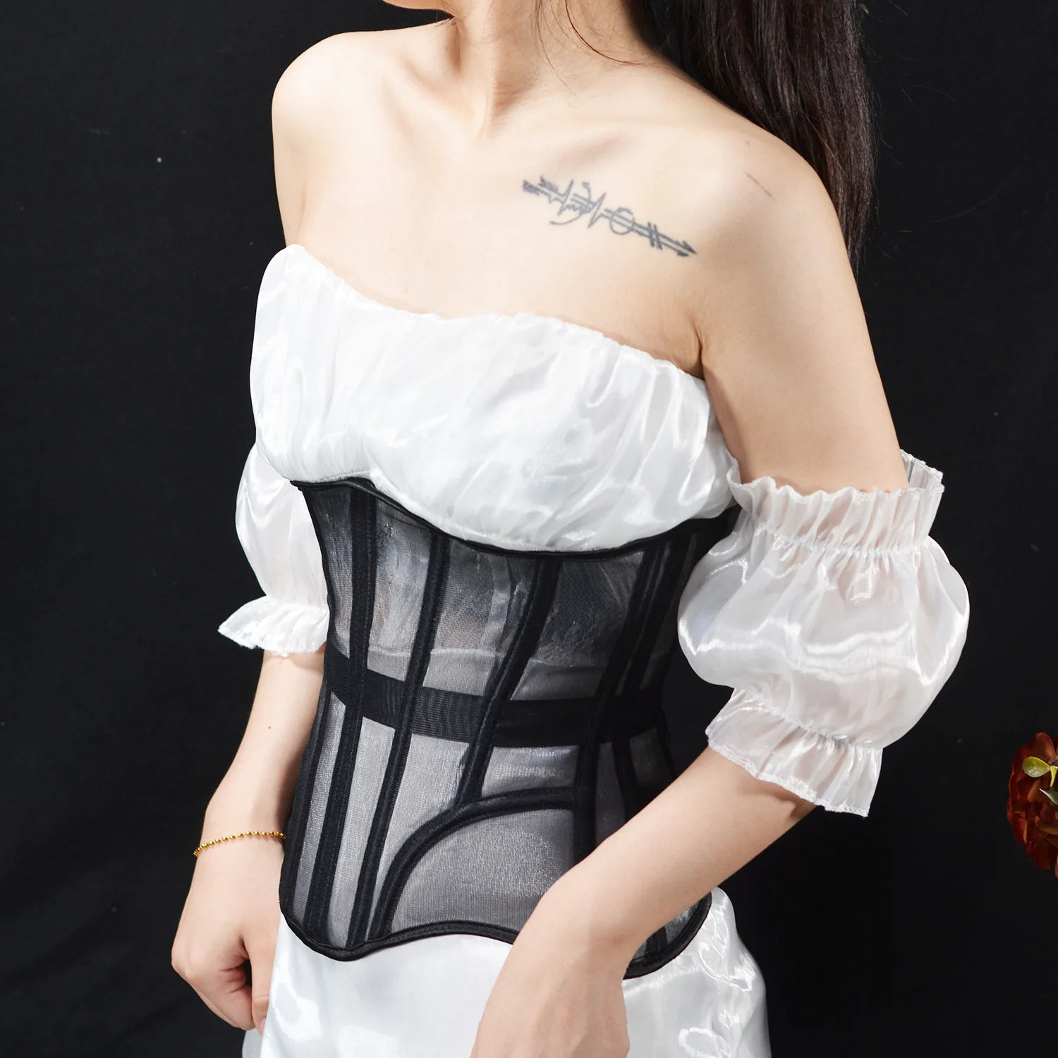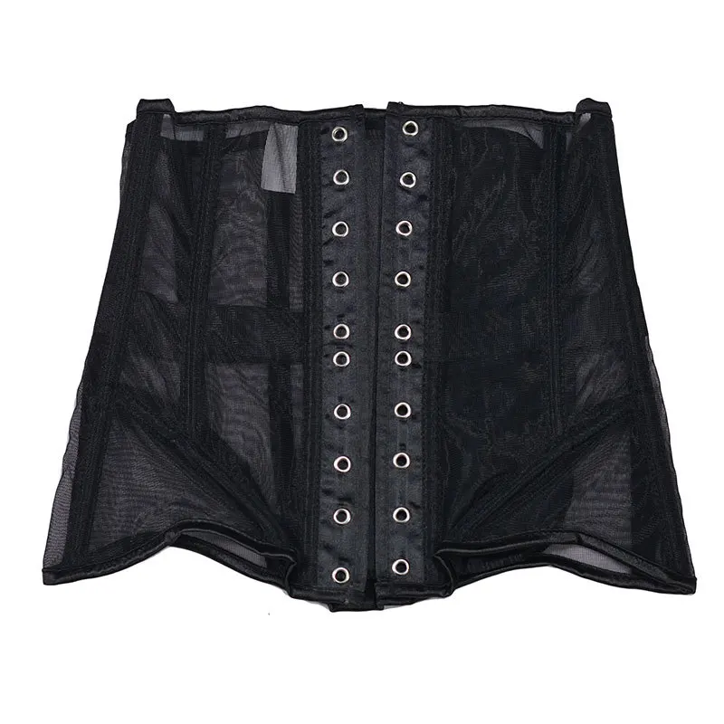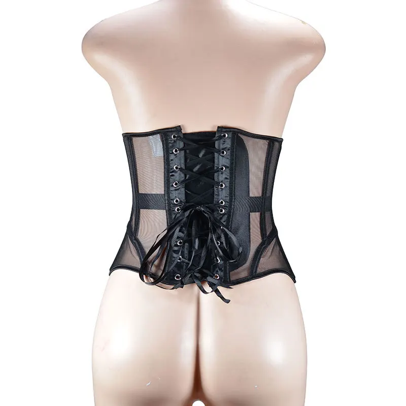 Women Abdomen Tight Corset Crops Under Bust Bustiers Breathable Mesh Waist Girdle With Bones Slimming Lace Up Bodices