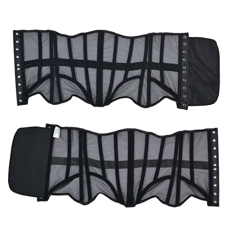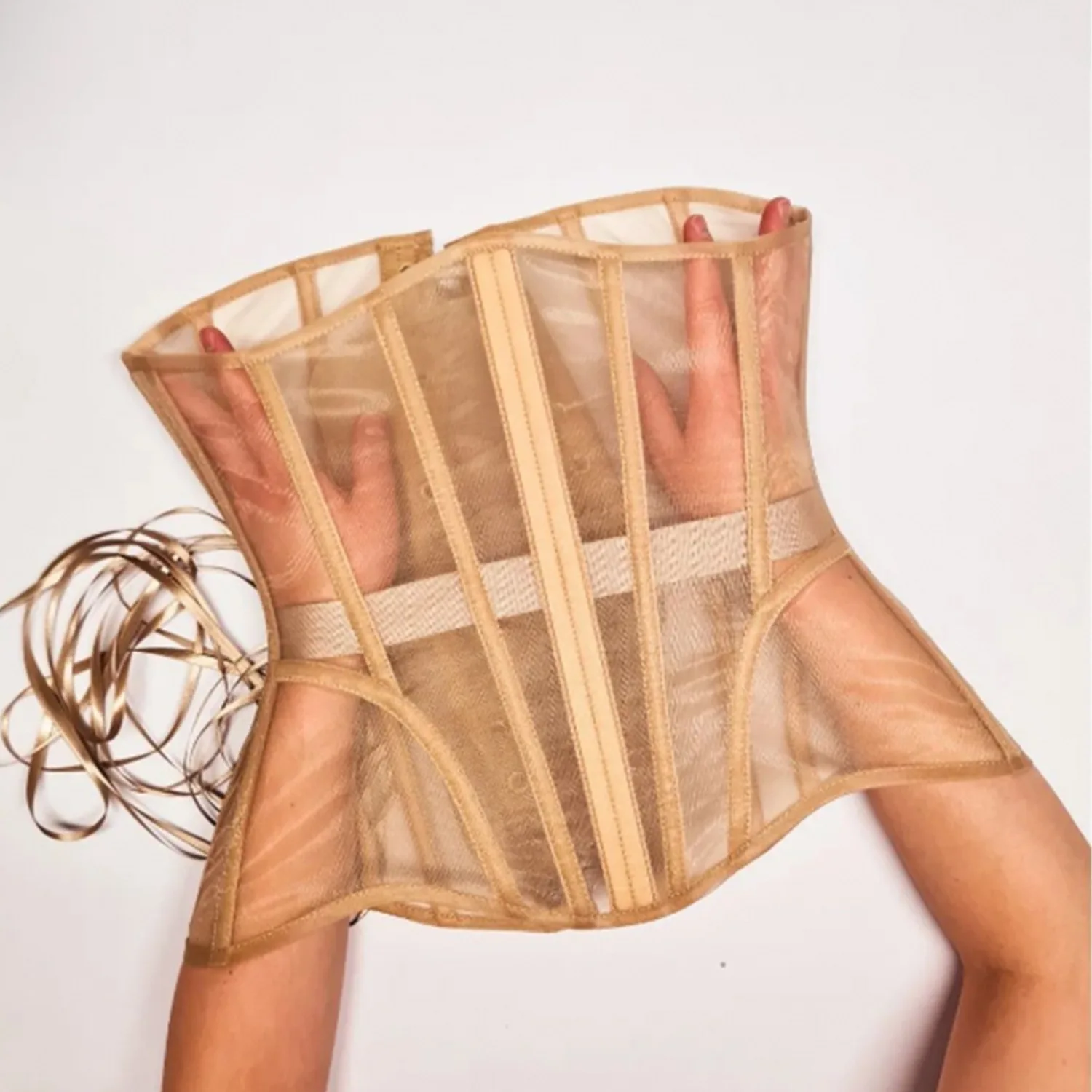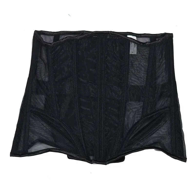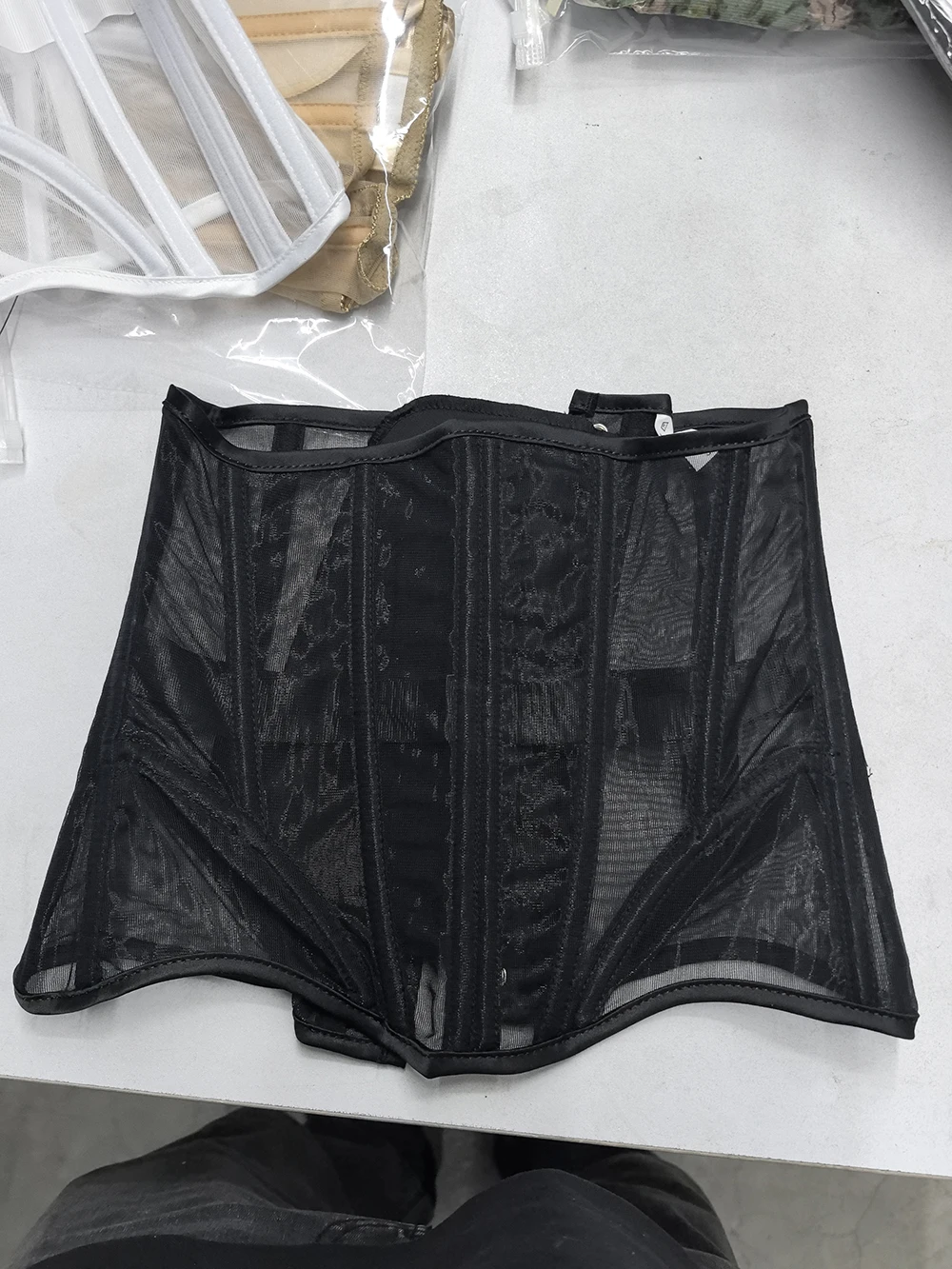 Women Abdomen Tight Corset Crops Under Bust Bustiers Breathable Mesh Waist Girdle With Bones Slimming Lace Up Bodices
