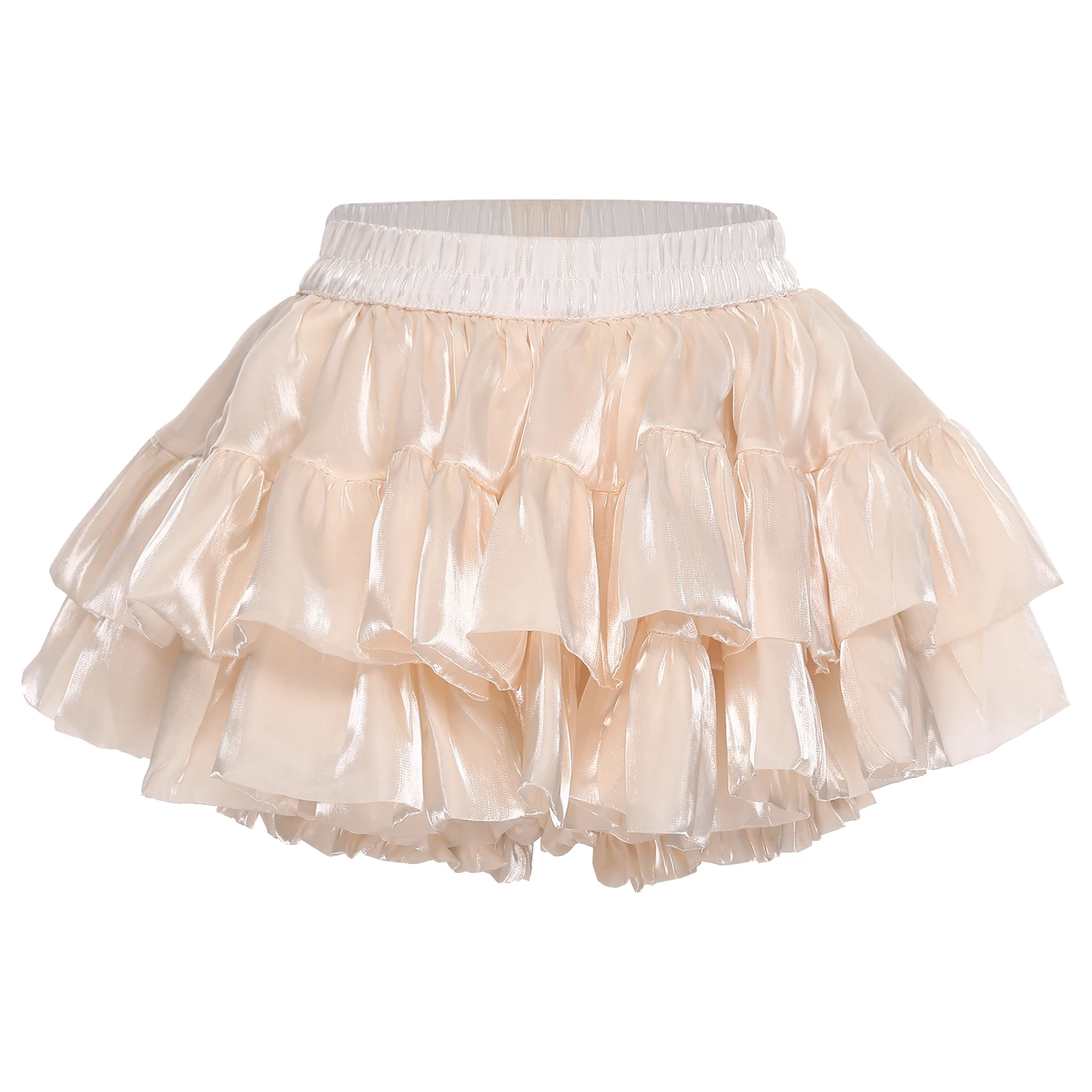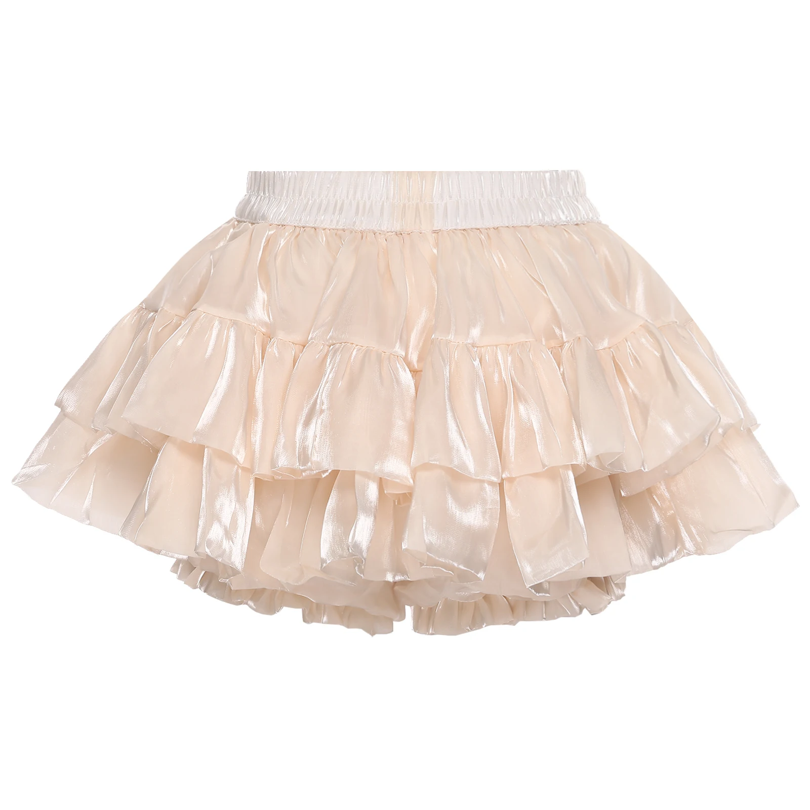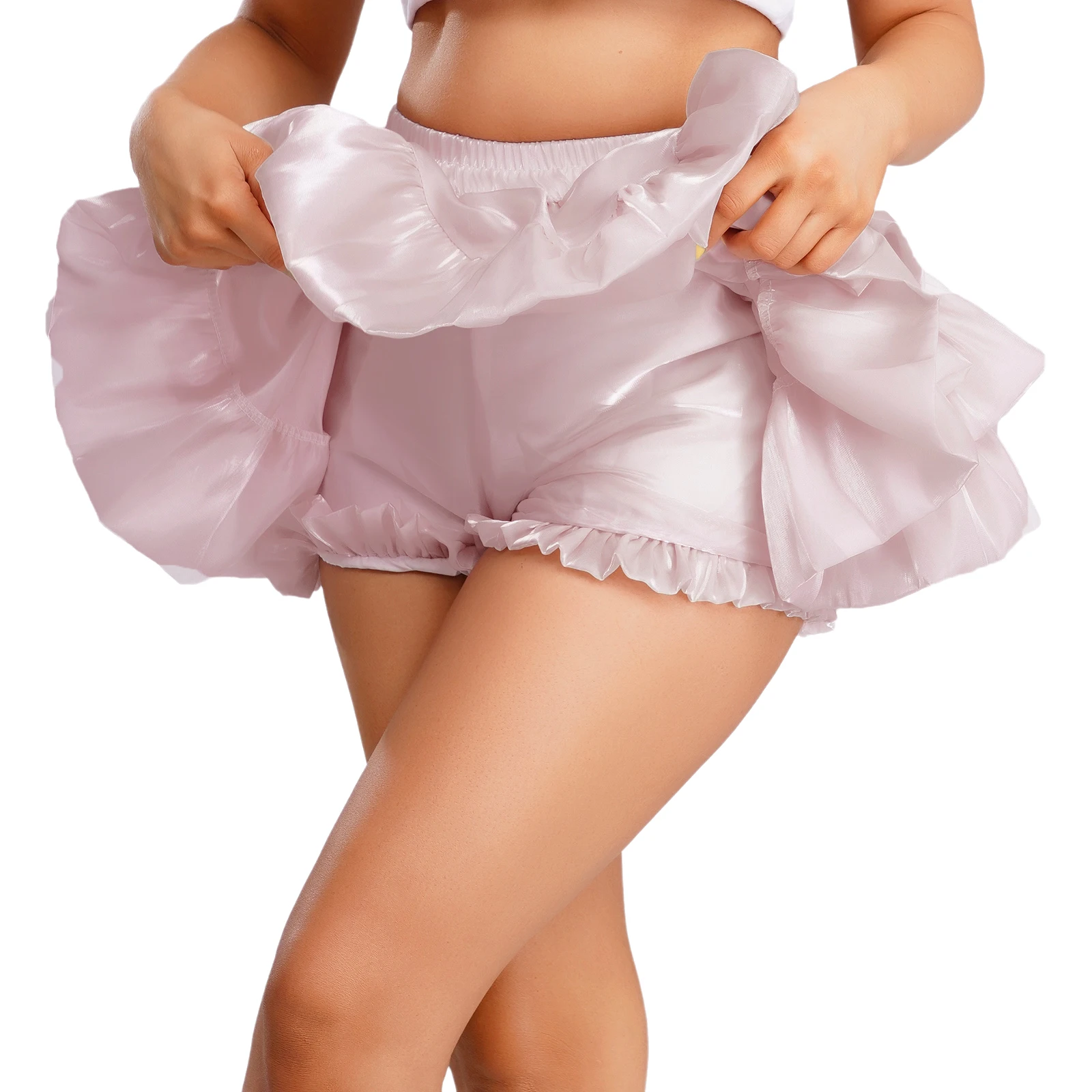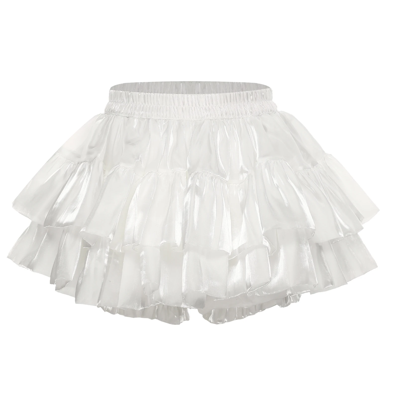 Women Lolita Pumpkin Shorts Puff Y2K Skirt Iridescent Tiered Culottes Elastic Waistband Ruffled Hem Built-in Skirt Anime Costume