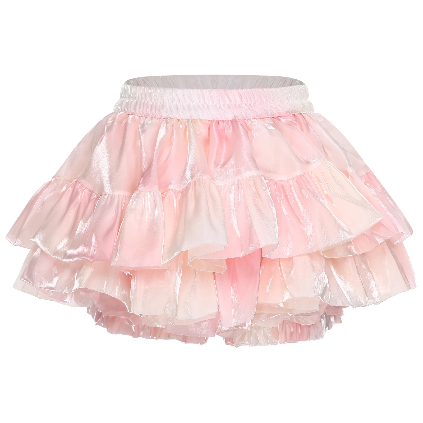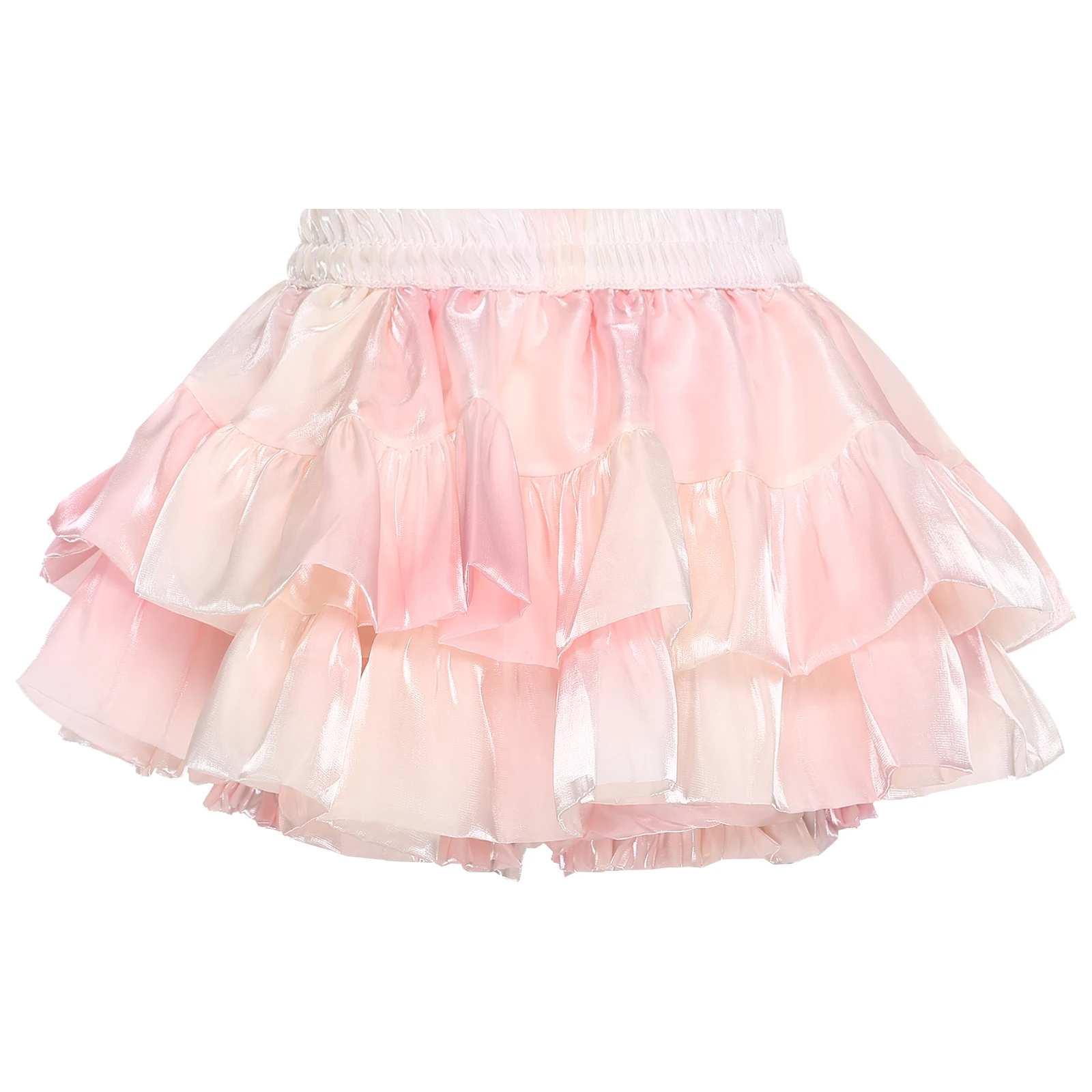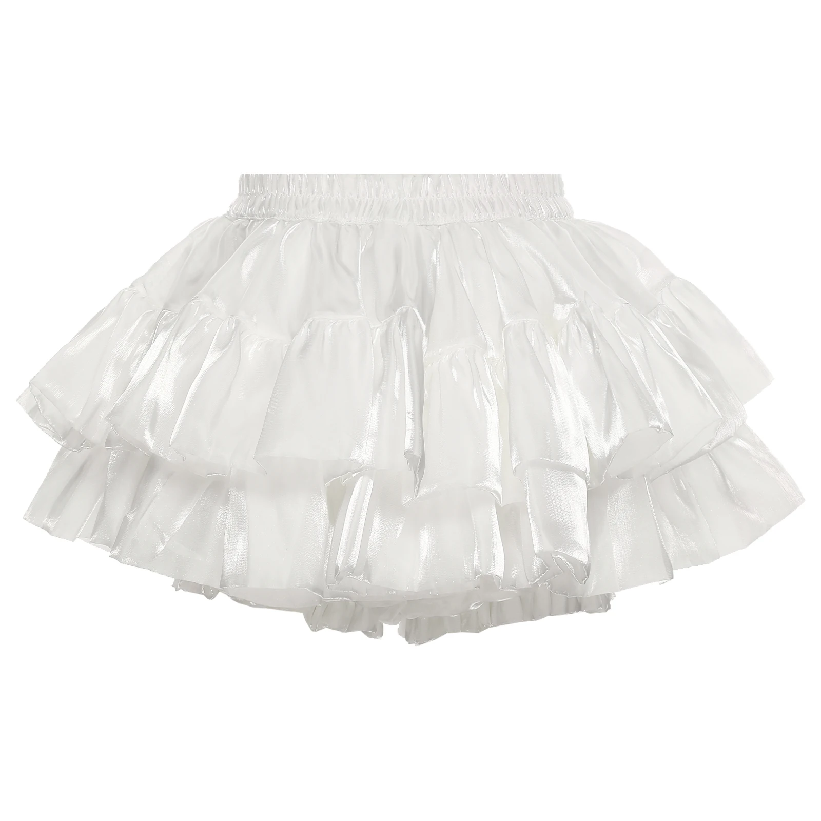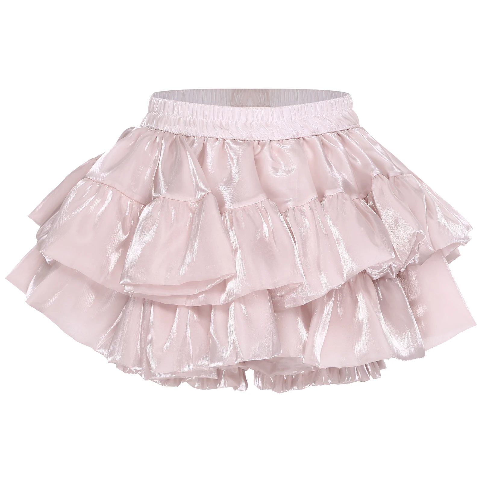 Women Lolita Pumpkin Shorts Puff Y2K Skirt Iridescent Tiered Culottes Elastic Waistband Ruffled Hem Built-in Skirt Anime Costume